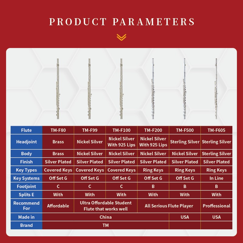 TM Flute Affordable Beginner High-Quality Sliver Planting Flute Instrument E Machine