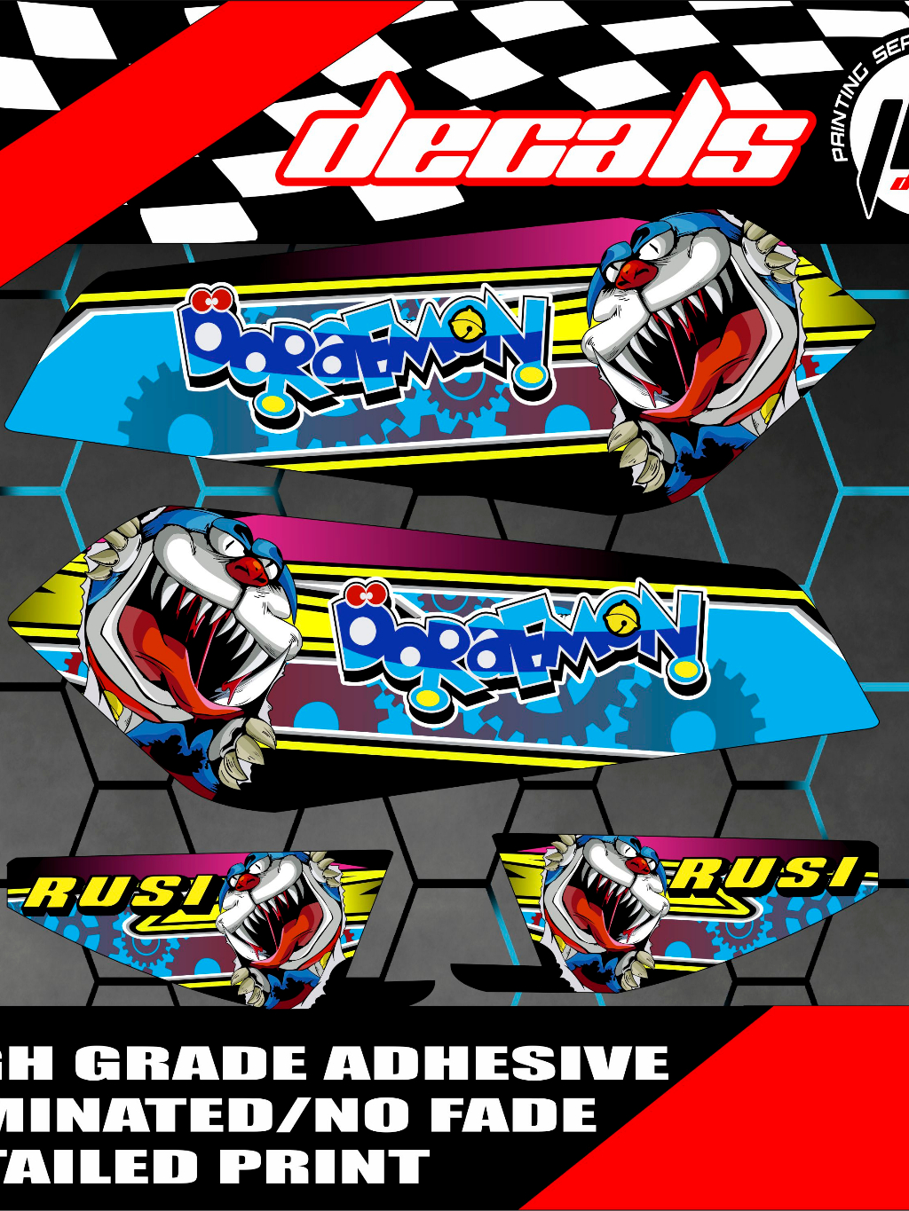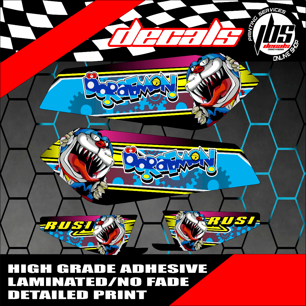 TMX RUSI PINOY MOTOPOSH SKYGO HIGH QUALITY DECALS STICKER THAI DOREAMON NO FADE RAIN OR SHINE GLOSSY