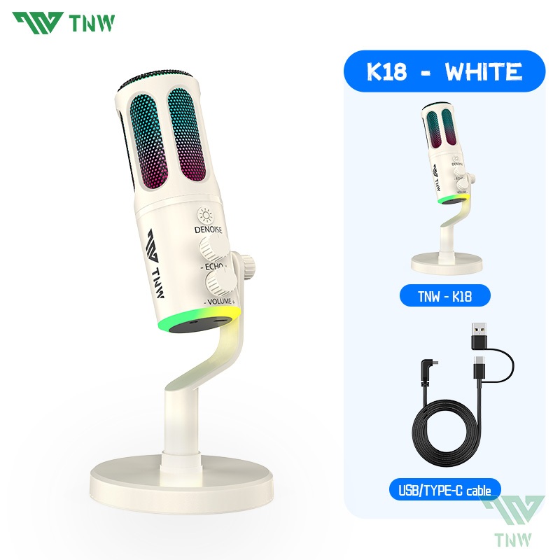 TNW K18 USB Condenser Microphone Wireless RGB Gaming Mic Noise Canceling For Phone PC videoke Live
