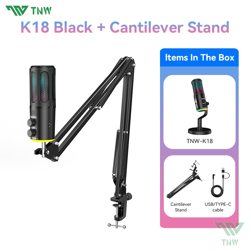 TNW K18 USB Condenser Microphone RGB Gaming Mic Noise Canceling For Phone PC videoke Live Streaming