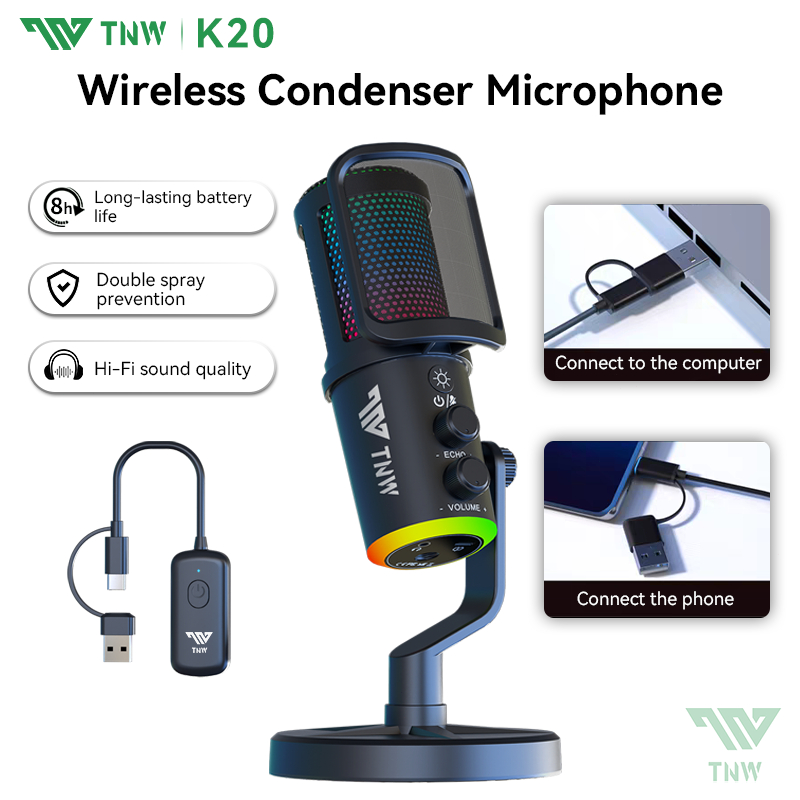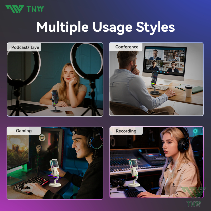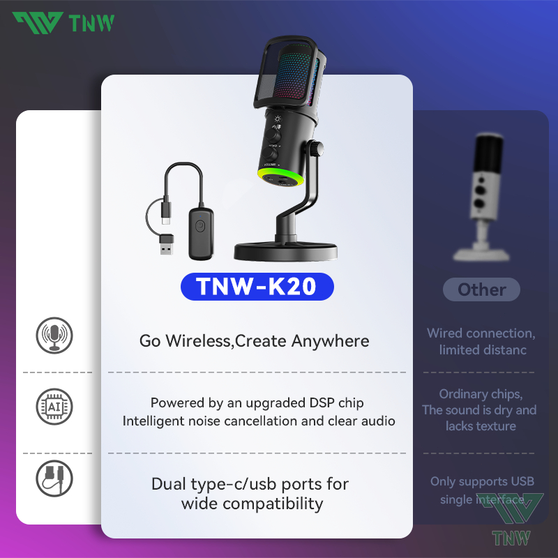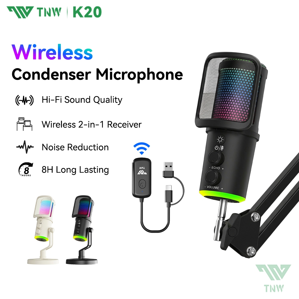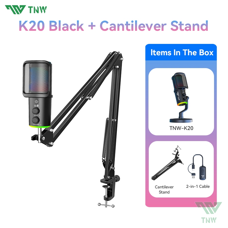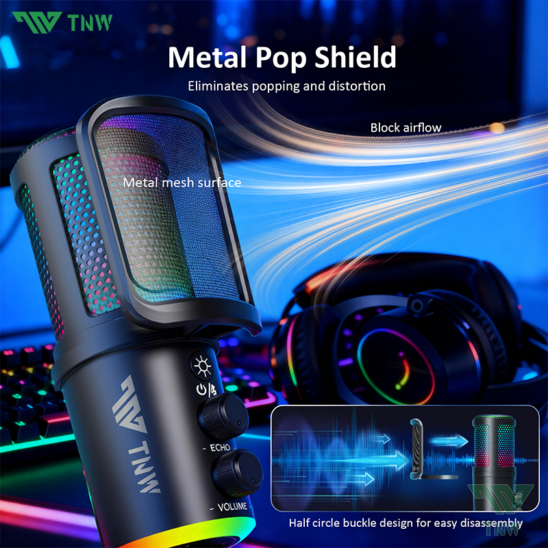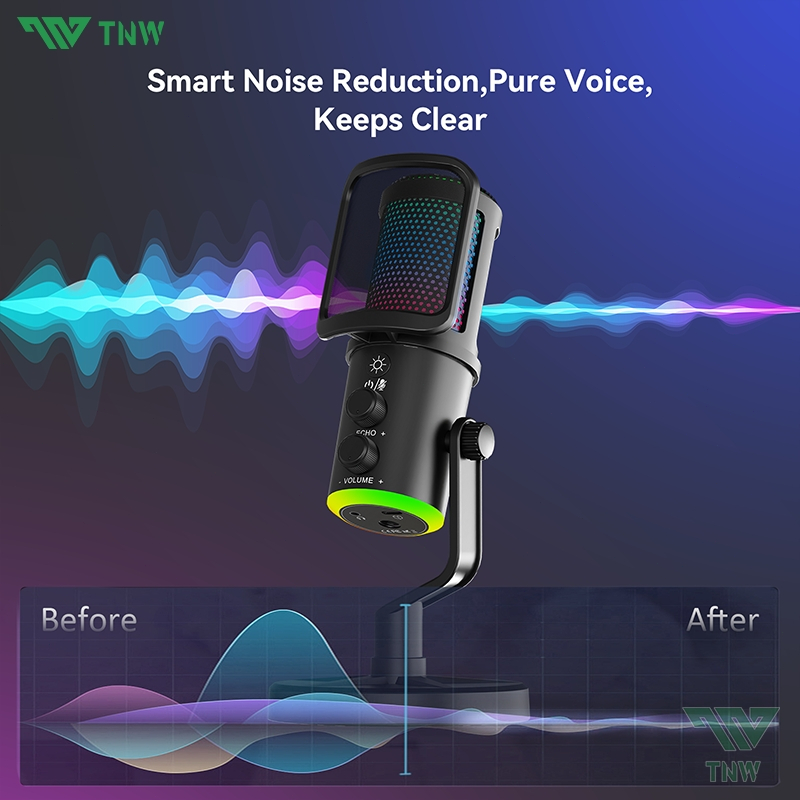 TNW K20 USB Condenser Microphone RGB Gaming Mic Smart Noise Reduction For PC,Phone,Streaming,Gaming