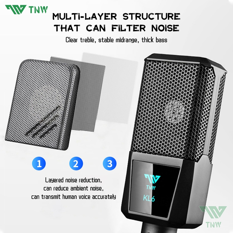 TNW KL6 Condenser Microphone Cardioid USB Mic with Tripod 3.5mm Interface Mic Kit for Livestream