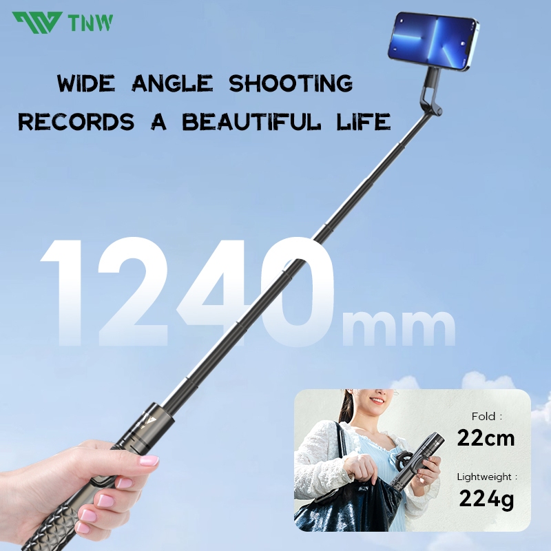 TNW T14 Magnetic Selfie Stick Magsafe Tripod Handheld Fold Stabilizer with Bluetooth Remote Control