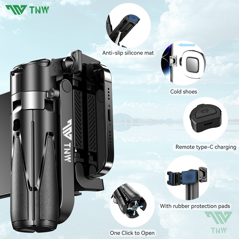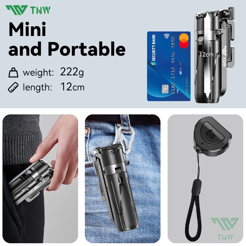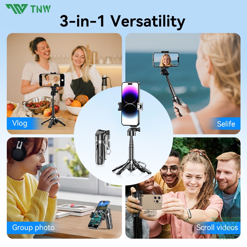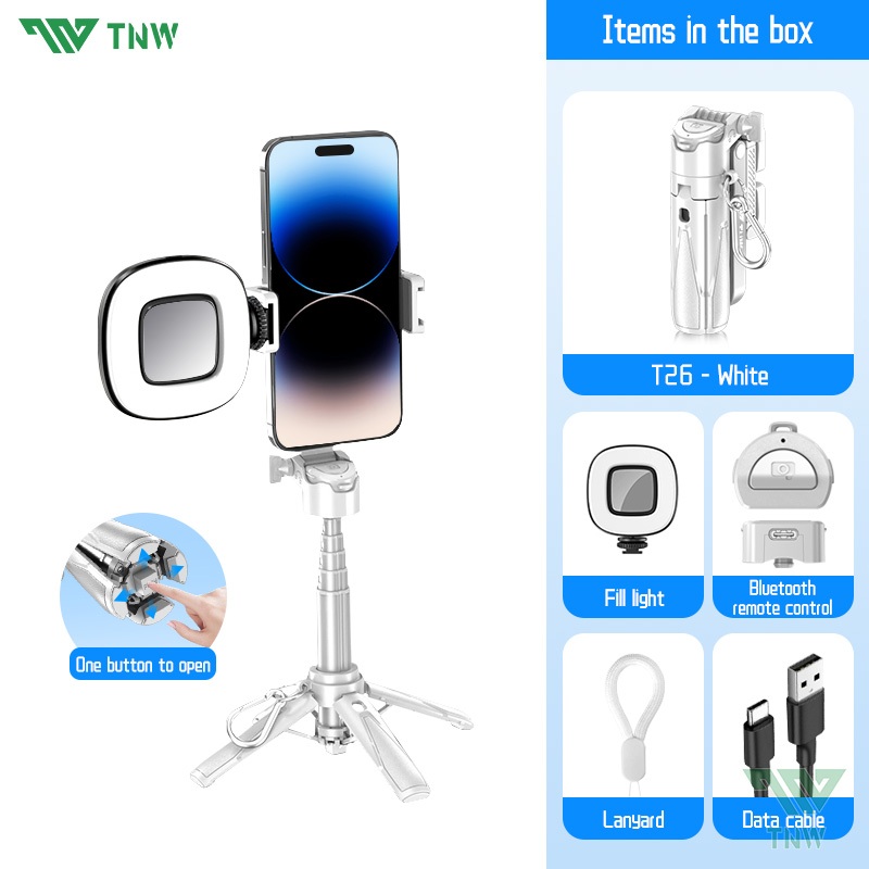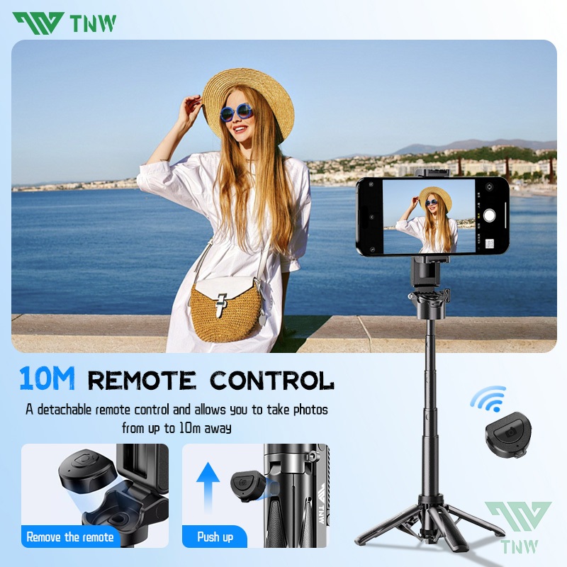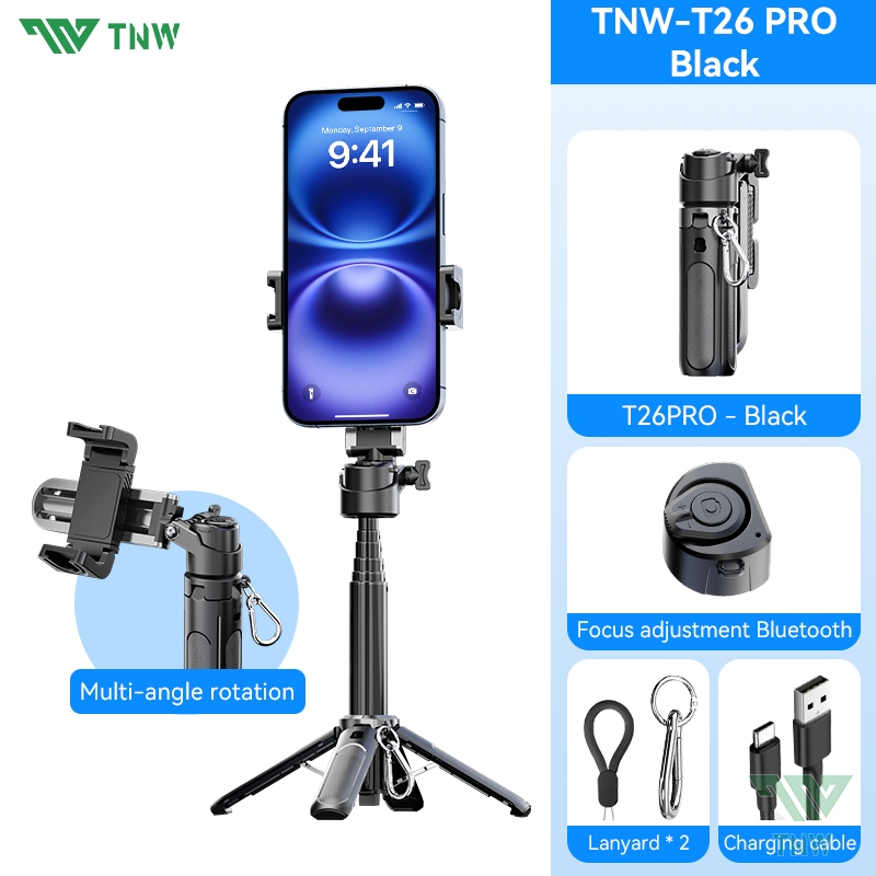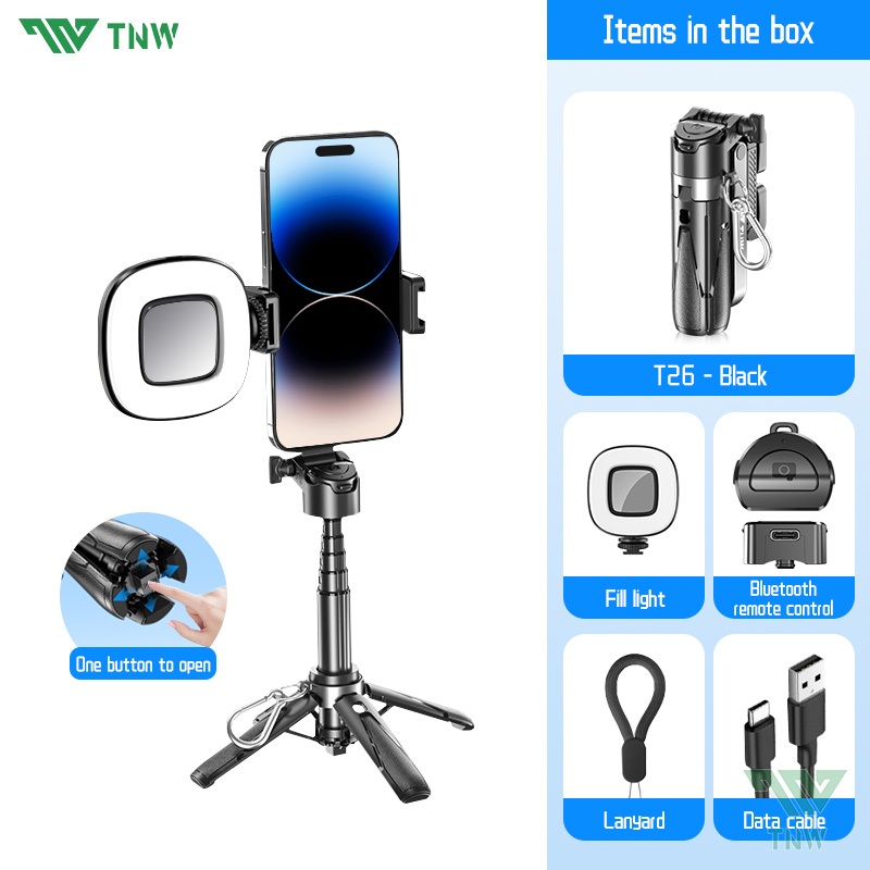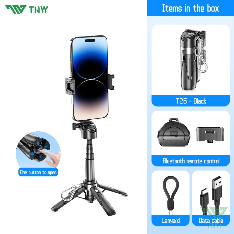 TNW T26 Selfie Stick Mini Extendable Phone Grip Tripod With Bluetooth Remote Shooting Vlog Video