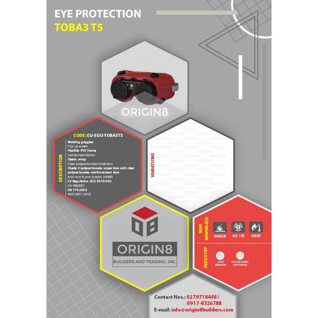 TOBA 3 DELTA PLUS SAFETY GOGGLES FOR WELDING SHADE 5 FLIP UP