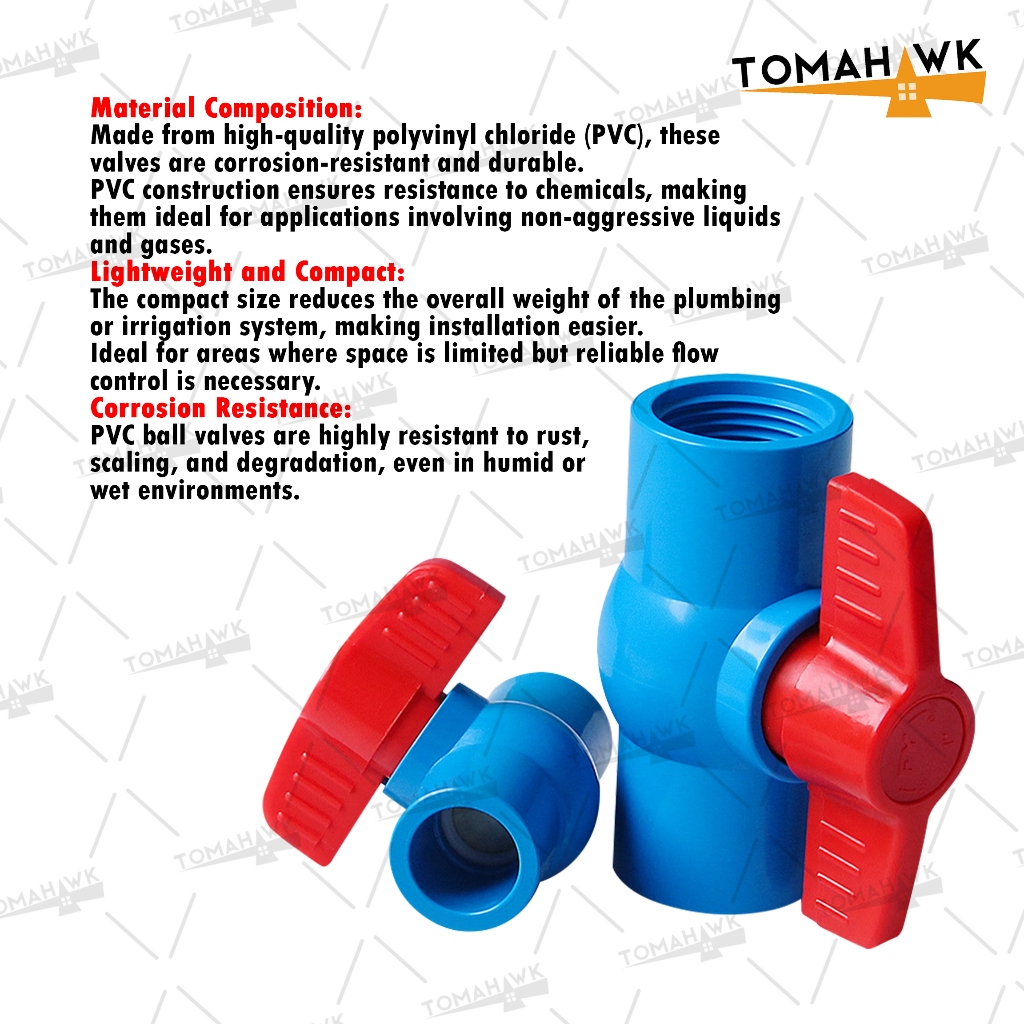 TOMAHAWK PVC WATER PIPE PLASTIC BALL VALVE WATER STOP SWITCH WATER PIPE ADAPTER
