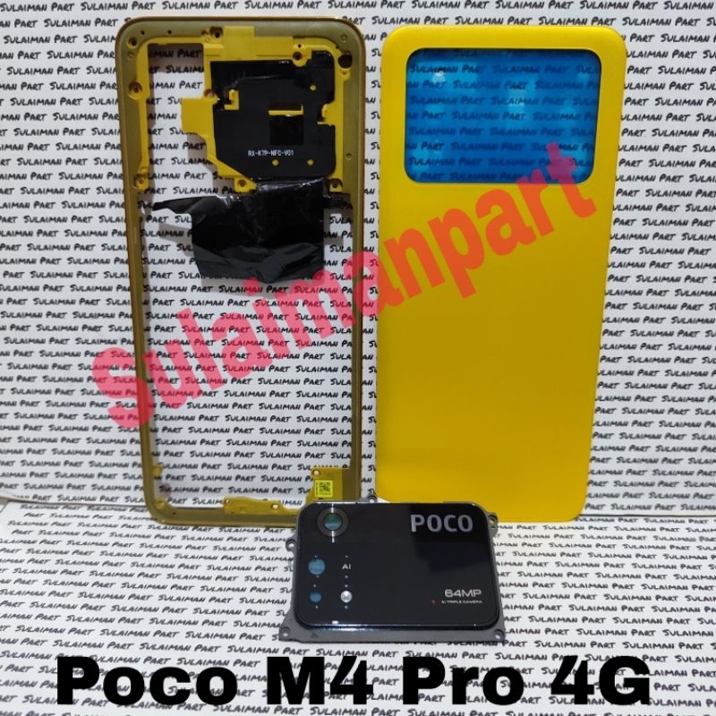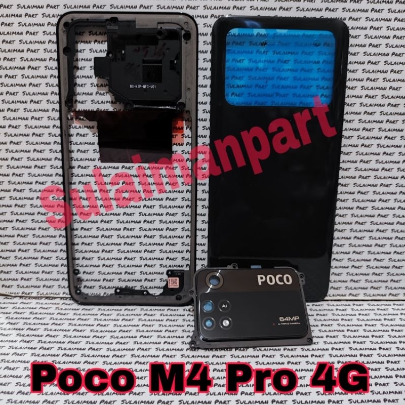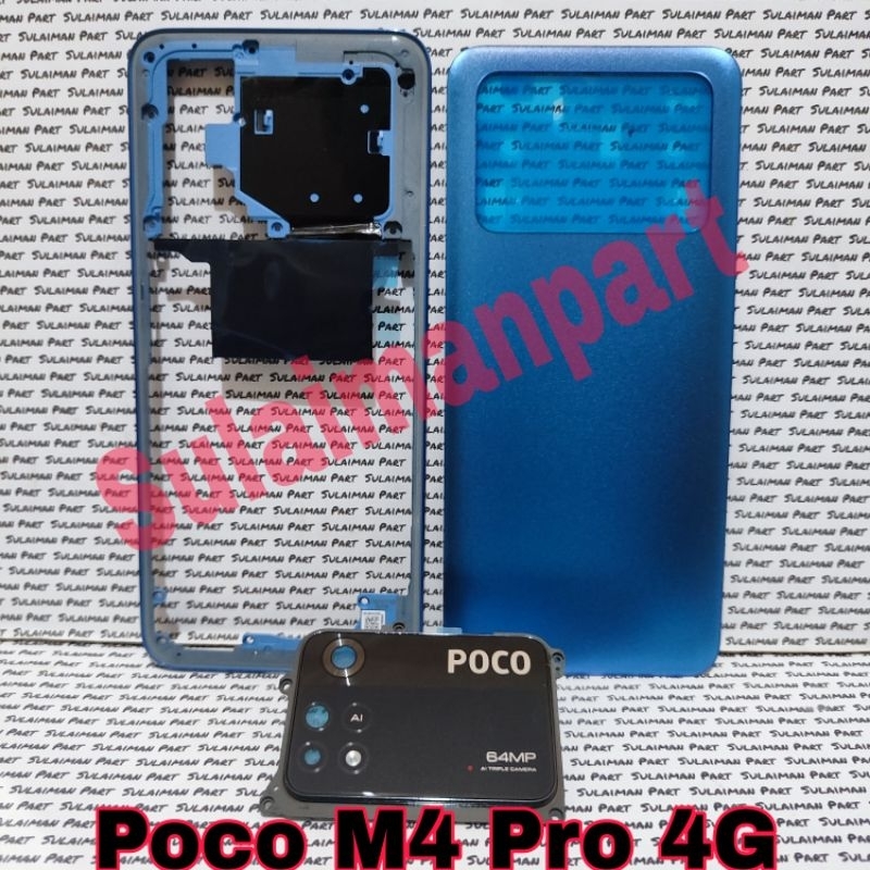 TOMBOL MESIN Casing Housing Casing Fullset Xiomi Poco M4 Pro 4G Backdor + Bezzel Side Bone Engine Cover + Camera Glass Ring External Volume Button