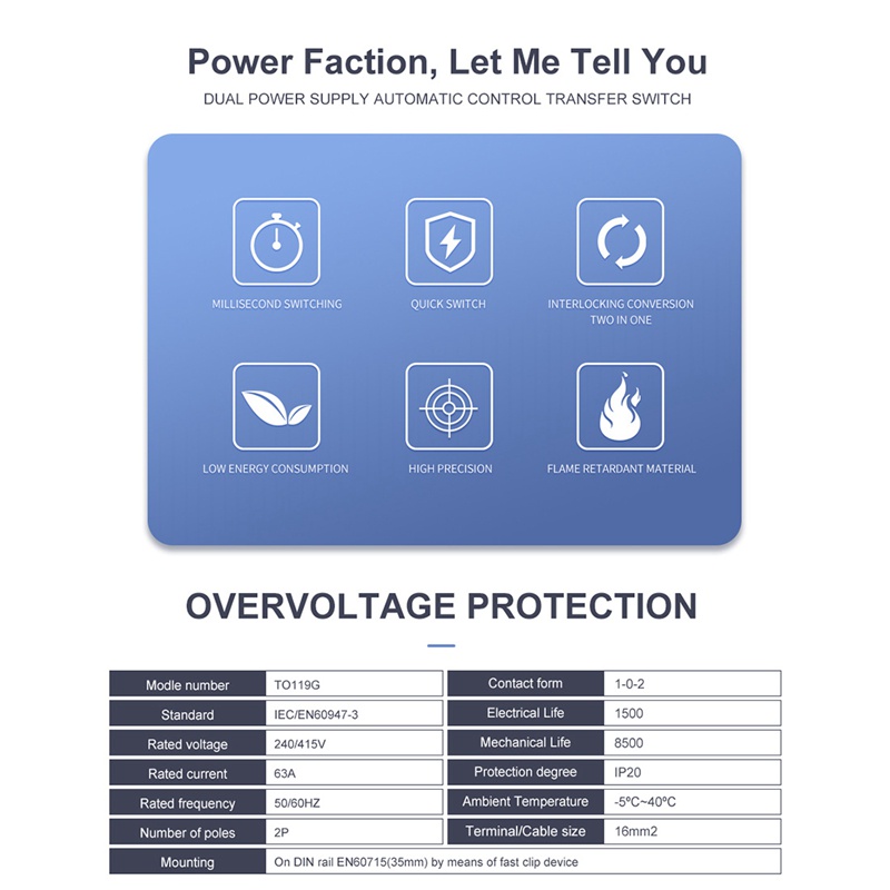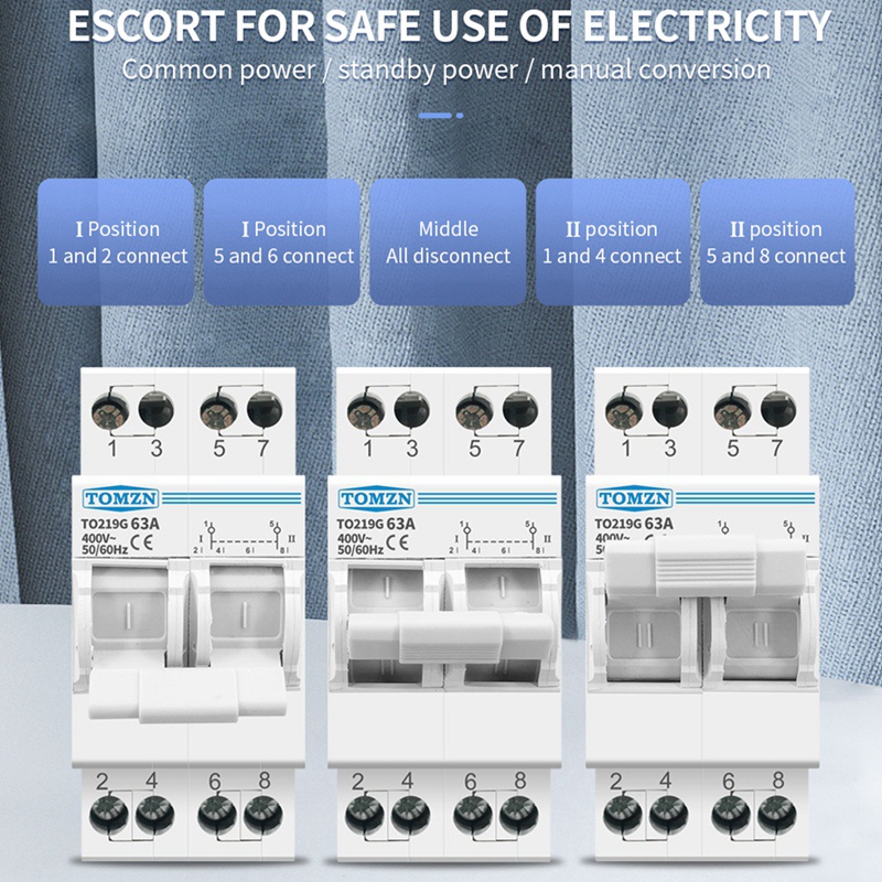 TOMZN 2P 63A MTS Dual Power Manual Transfer Isolating Switch Interlock Circuit Breaker Din Rail Isolating Discounnecting Switch