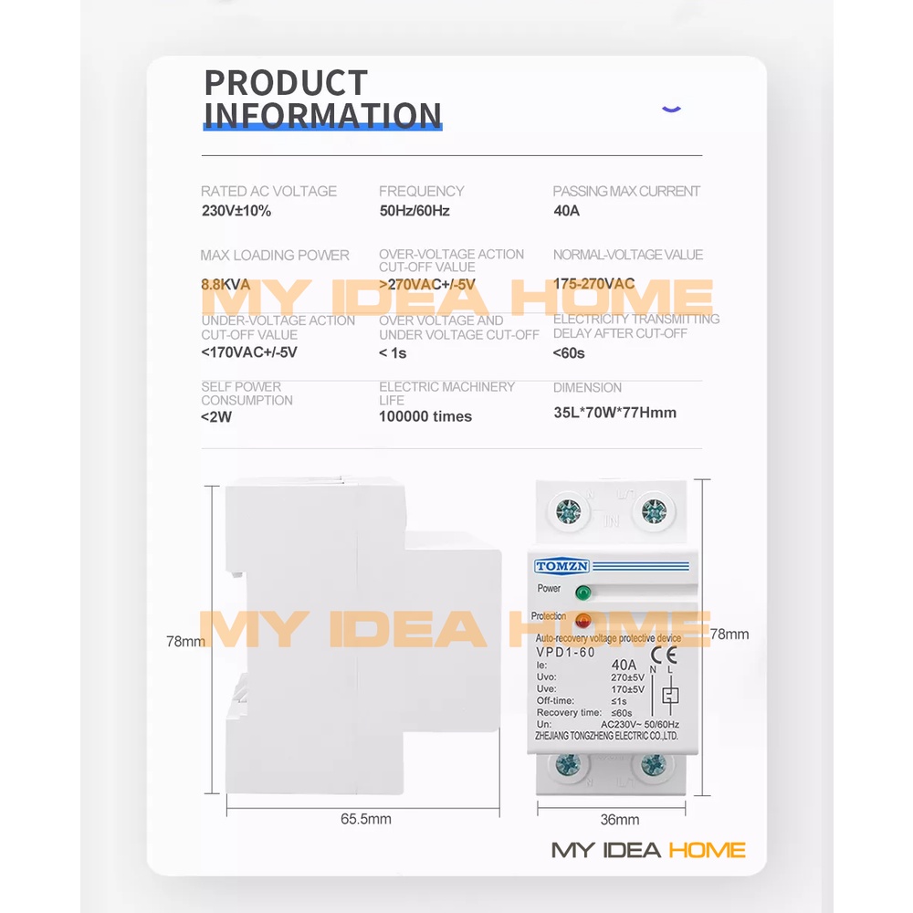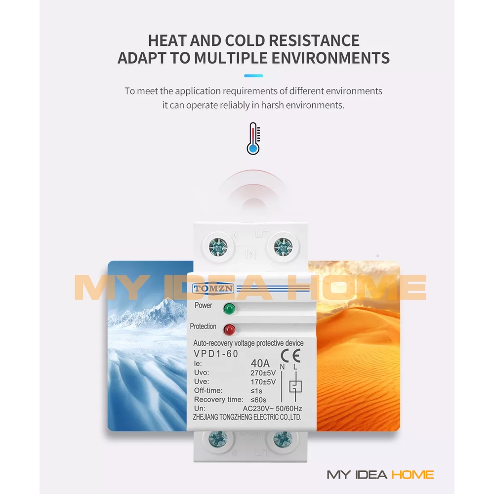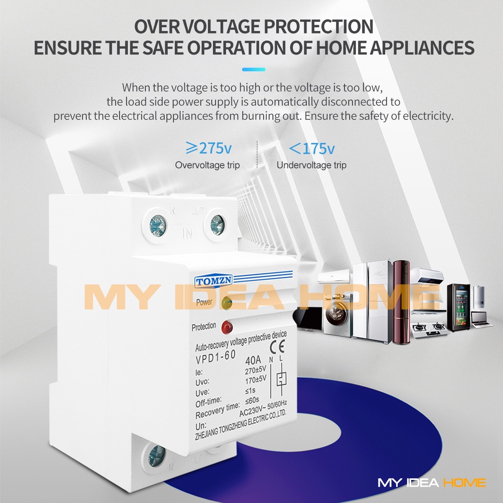 TOMZN AC 230V Automatic Self-Multiple Undervoltage Protector Voltage Protection Device VPD1-60 COD
