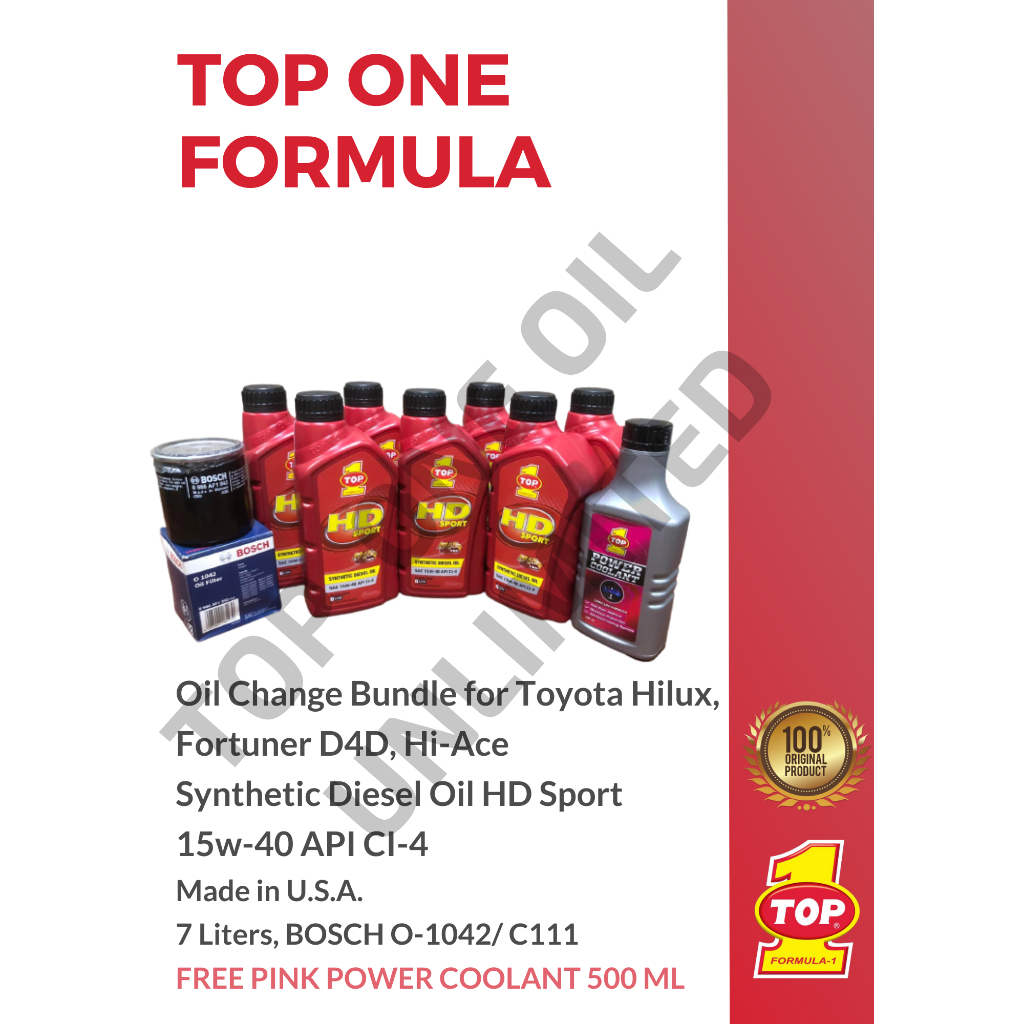 TOP 1 - 15w-40 HD Sport Oil Change Bundle for Toyota Innova, Fortuner HiAce D4D, 7 Liters