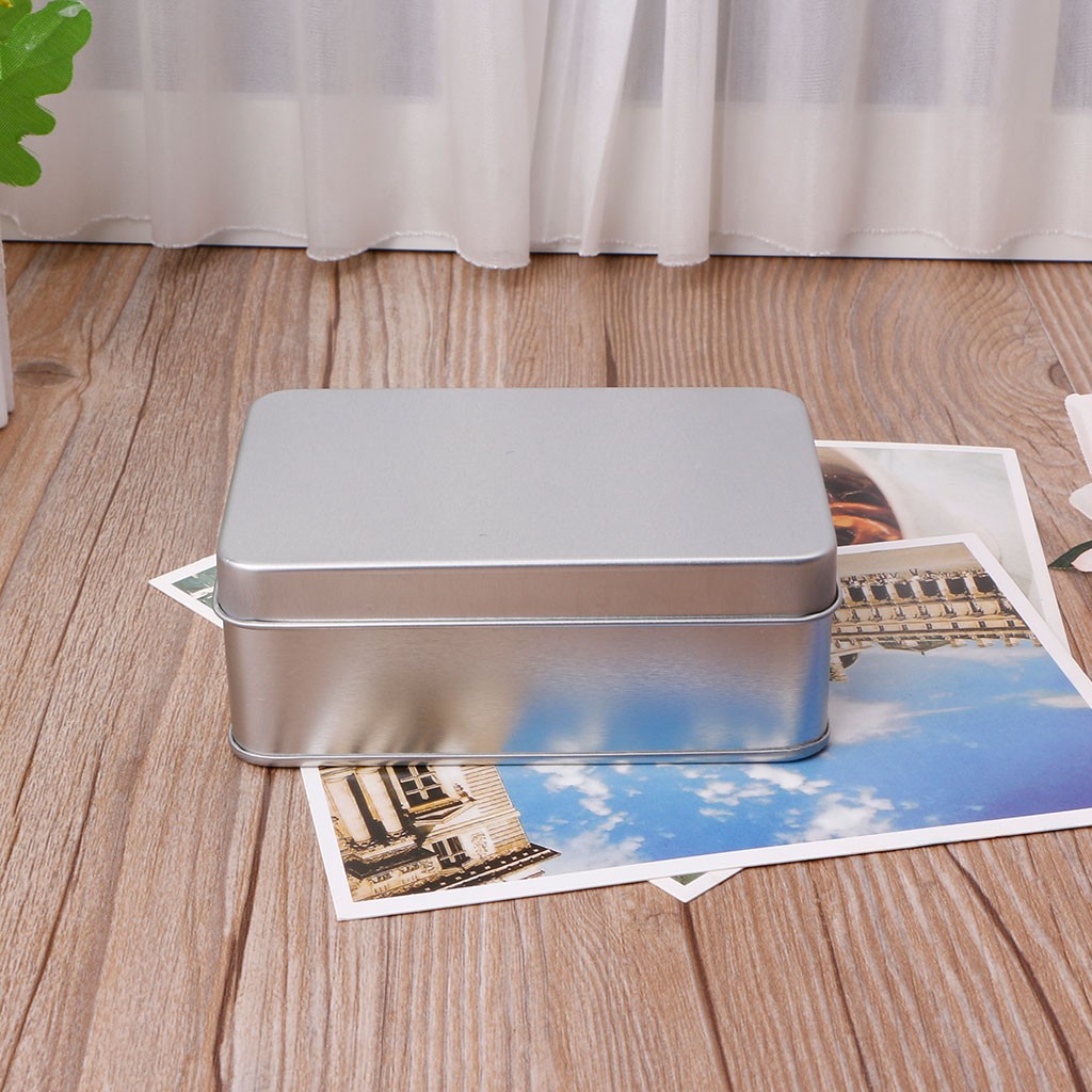 TOP Small Metal Tin Silver Storage Box Case Organizer