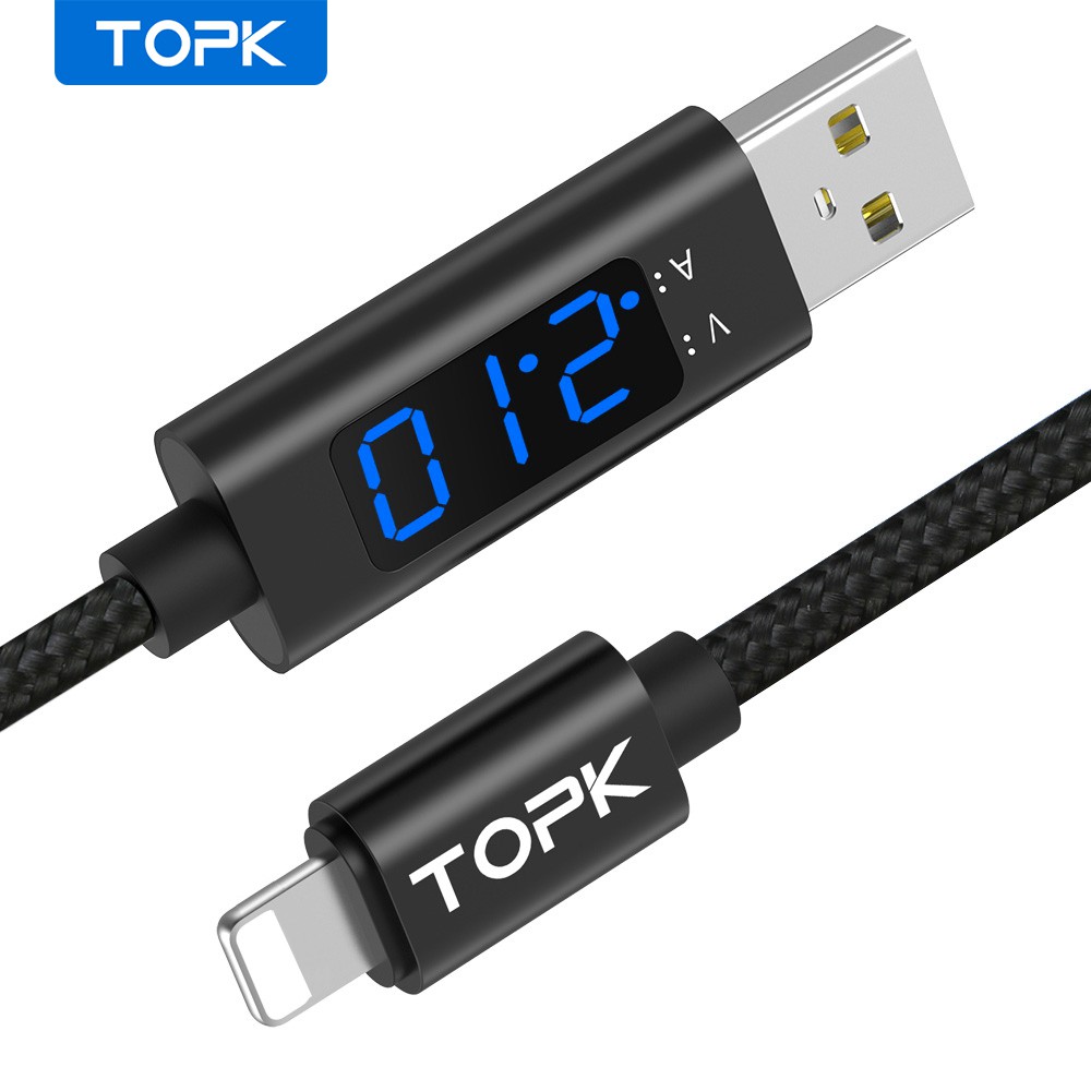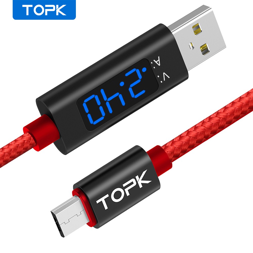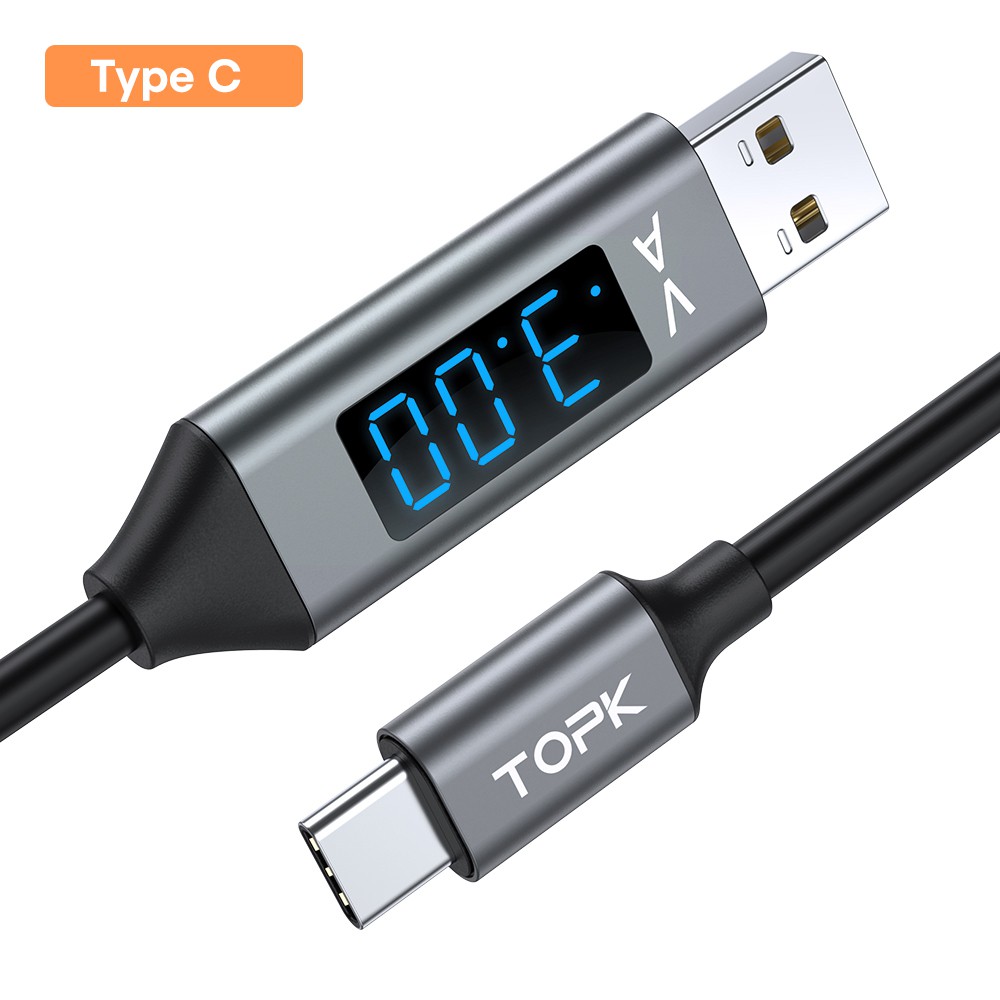TOPK AC32 LED Micro USB Type C Cable Voltage And Current Display Fast Charging Phone Charger Cables