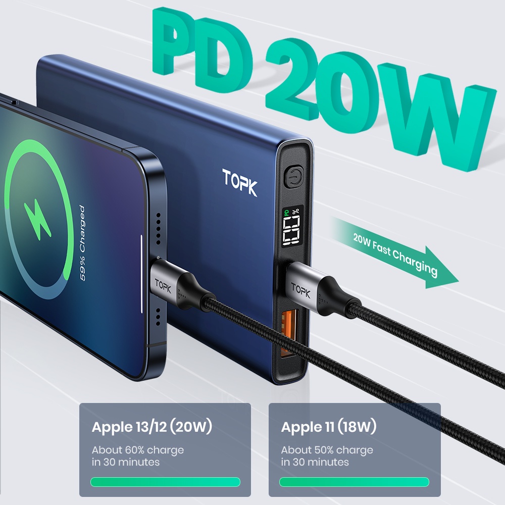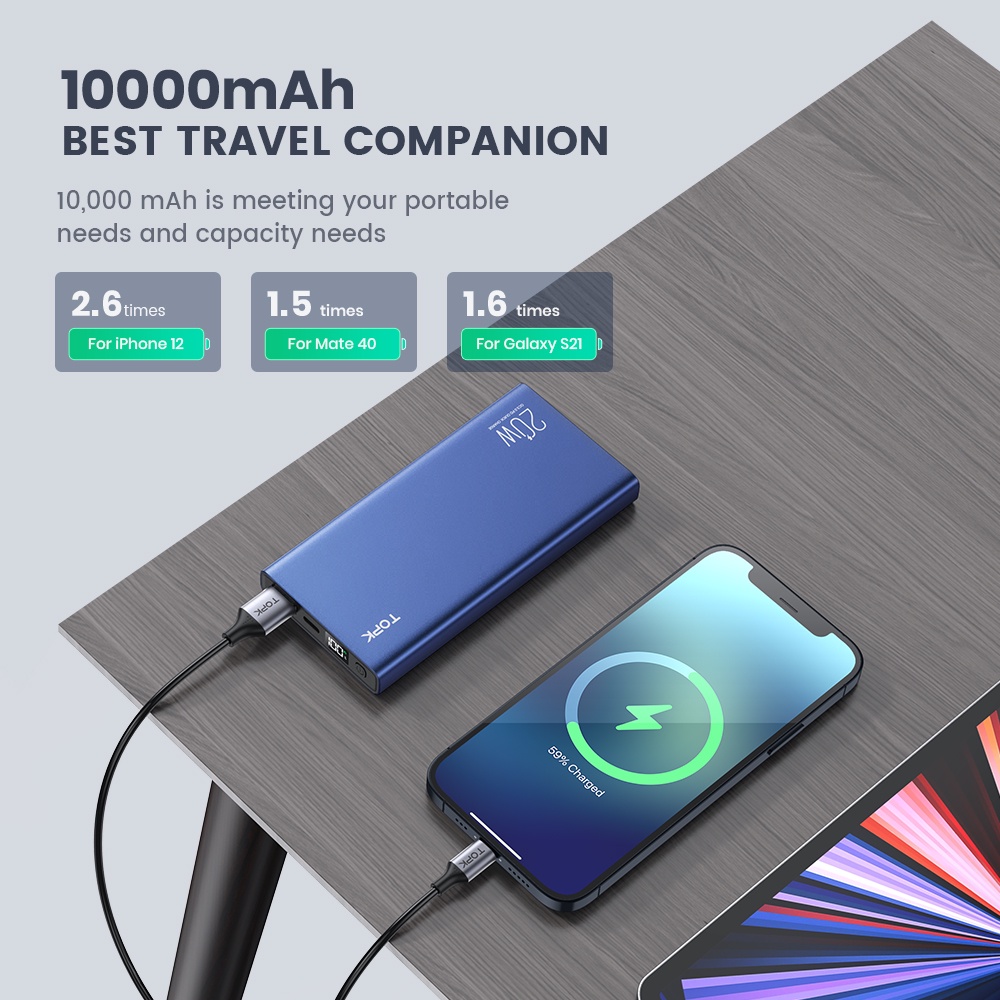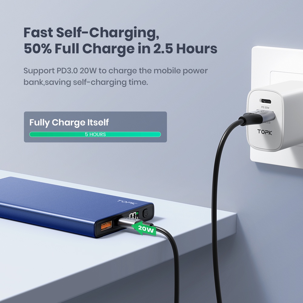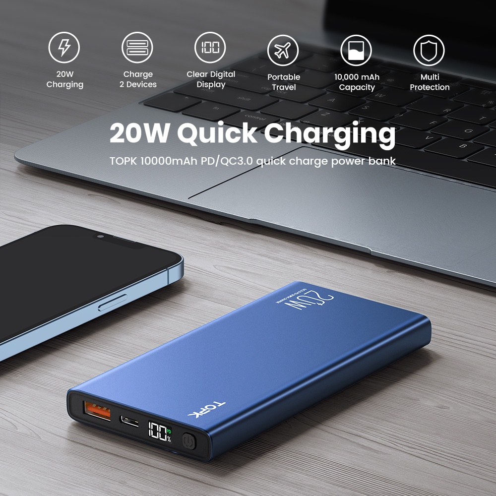 TOPK I1006P PD 20W 10000mAh Powerbank Dual USB LED Display Power Bank Backup Battery