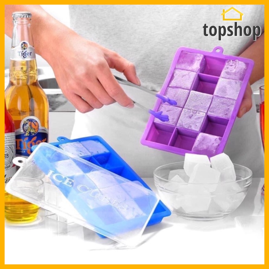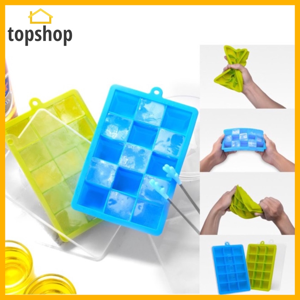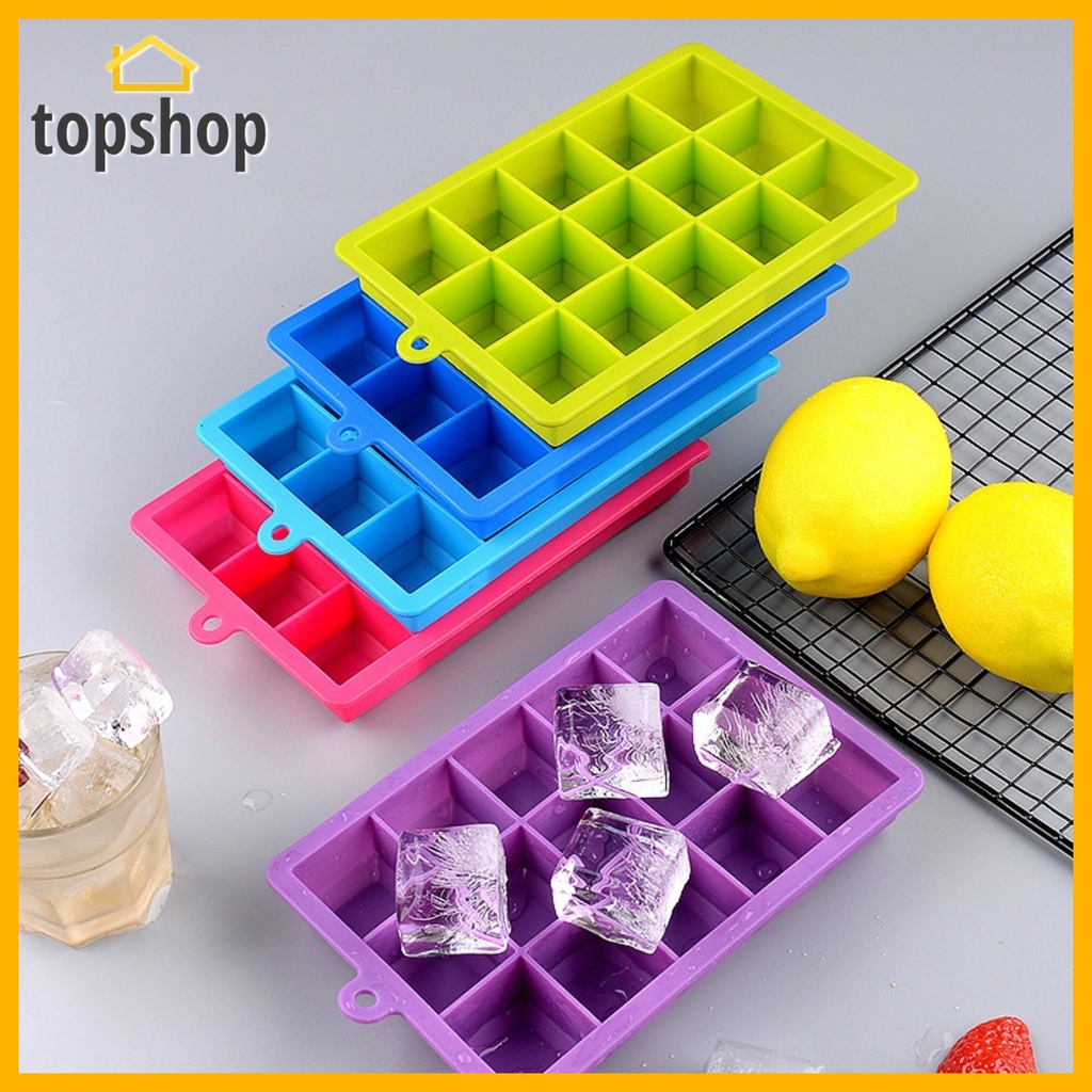 TOPSHOP 15 Grids Silicone Ice Cube Molder Tray Fruit Popsicle Maker with Square Shape Ice Jelly Mold