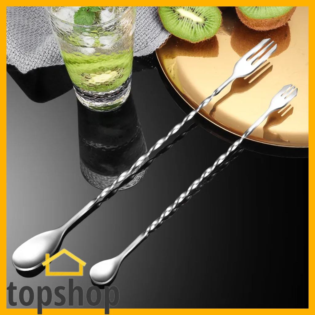 TOPSHOP 1pcs Long Stirrer Stainless Steel Mixing Spoon Spiral Pattern Bar Mixed Spoon Drink Bar Tool