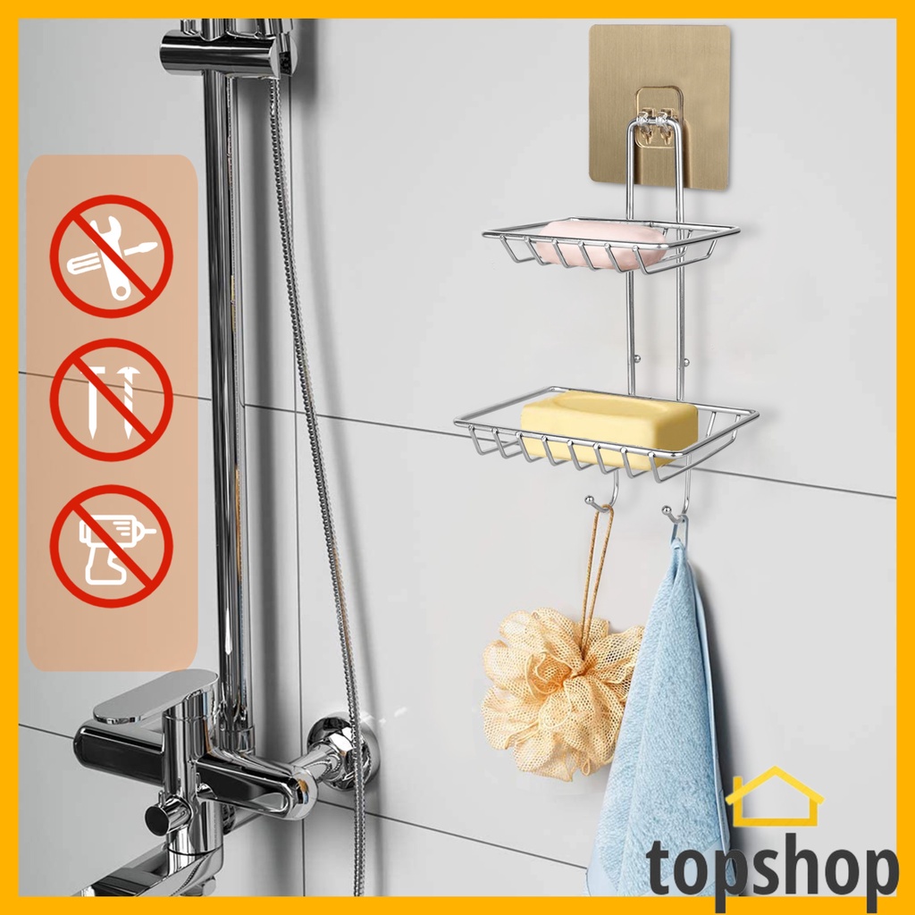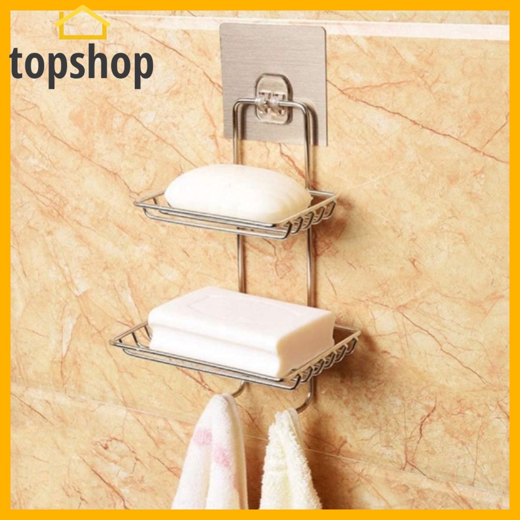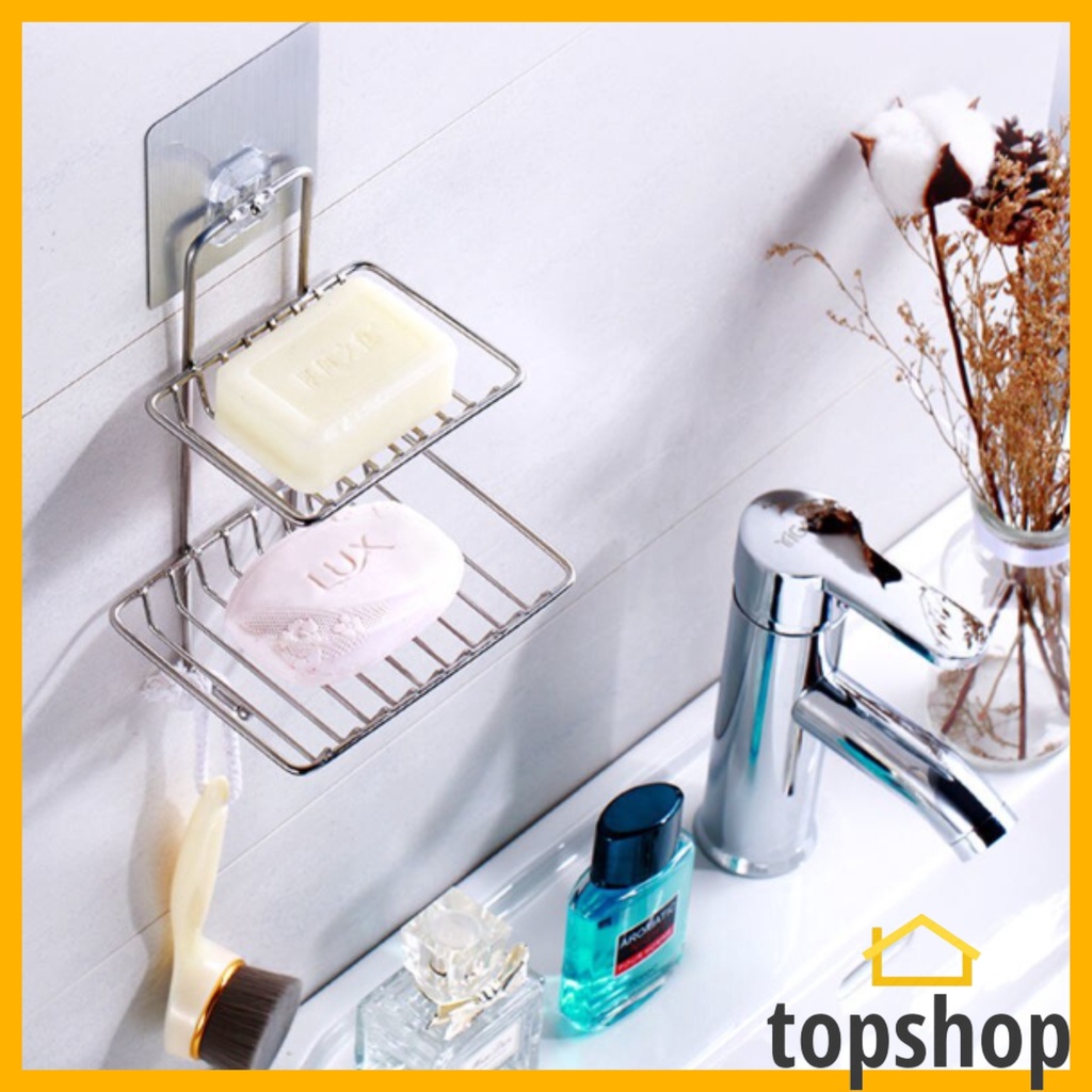 TOPSHOP Stainless Steel Double Layers Soap Dish Shelf Wall Mounted Soaps Holder Rack for Kitchen