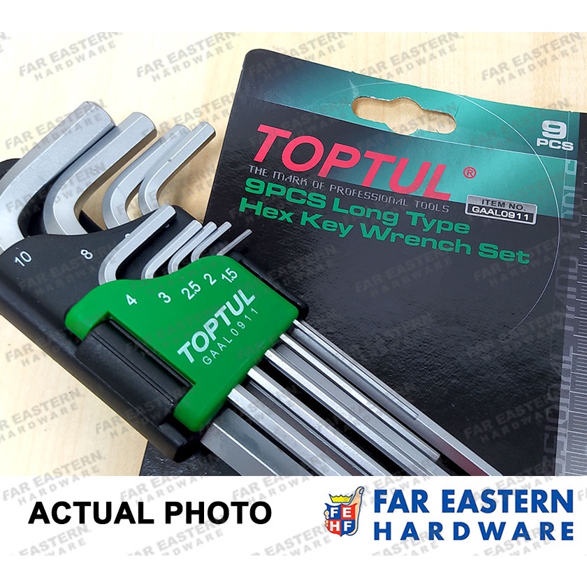 TOPTUL Allen Wrench Hex Key Long Type 9pcs Set GAAL0911 Made in Taiwan