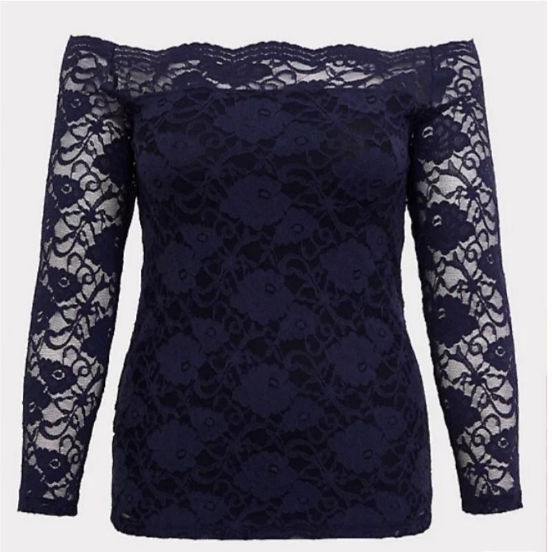 TORRID Women's Plus Size Lace Off Shoulder - Navy