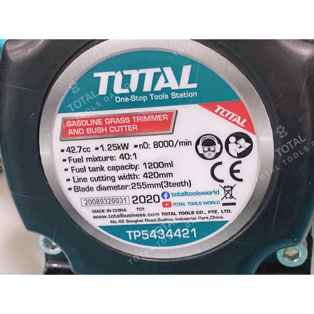TOTAL Gasoline grass trimmer and bush cutter 42.7cc TP5434421