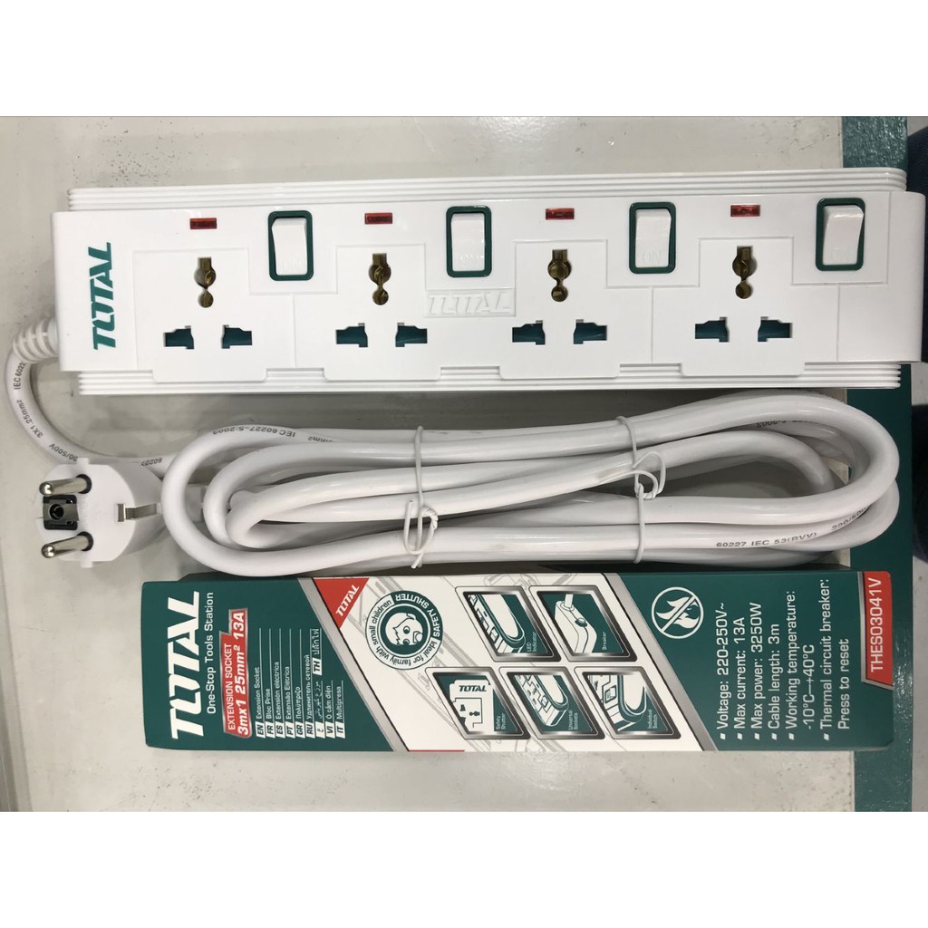 TOTAL THES03041V Extension Socket Extension Cord Set (4 Sockets)