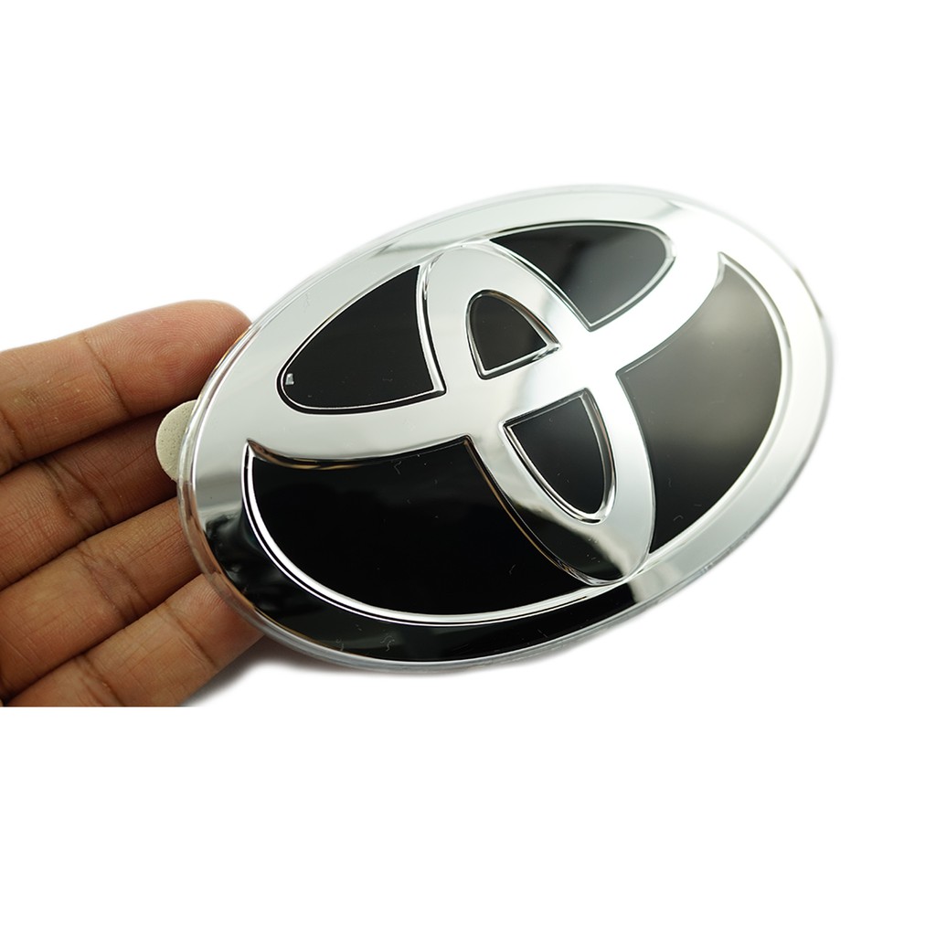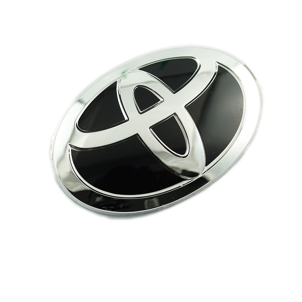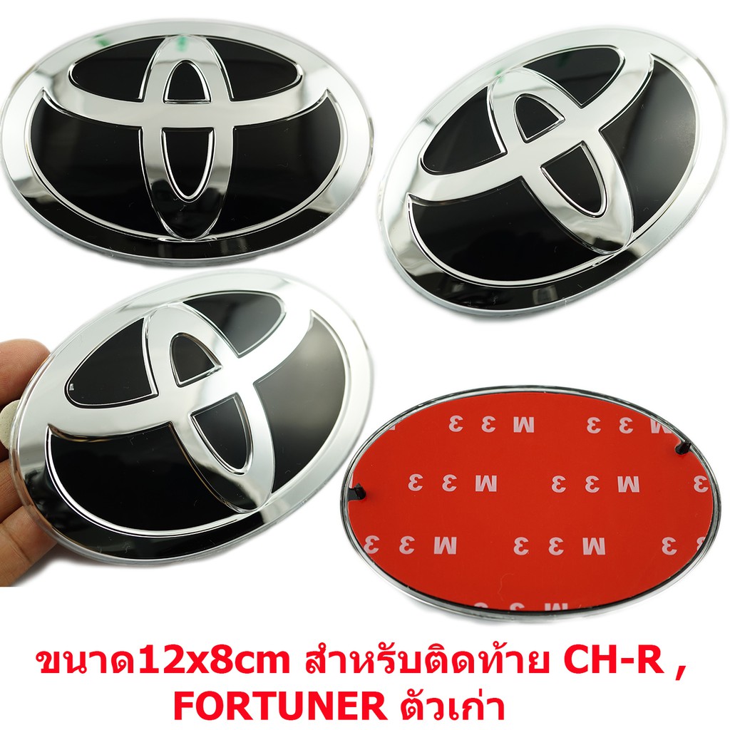 TOYOTA Logo Sign Black Glass-Coated Plastic Chrome Edge Size 12.0X8.0 Cm Attached To The Rear CH-R Old Fortuner