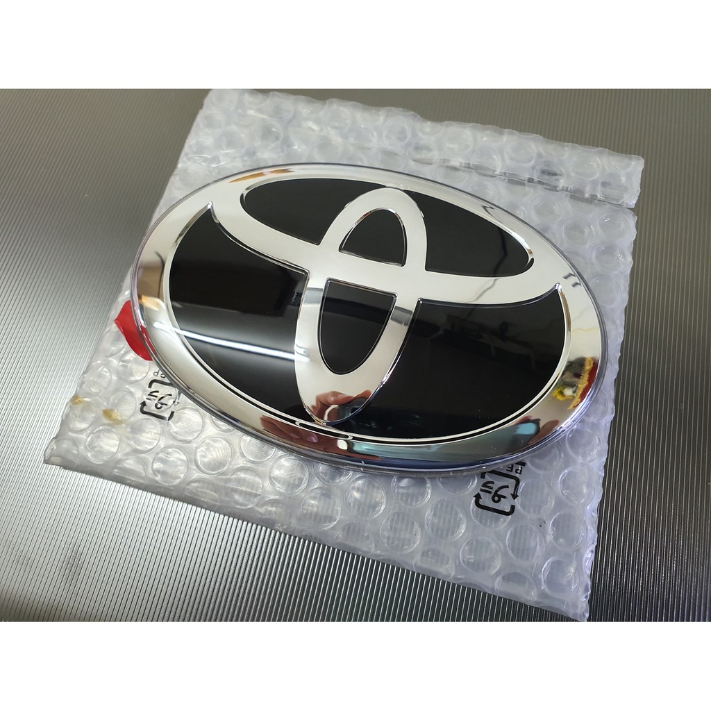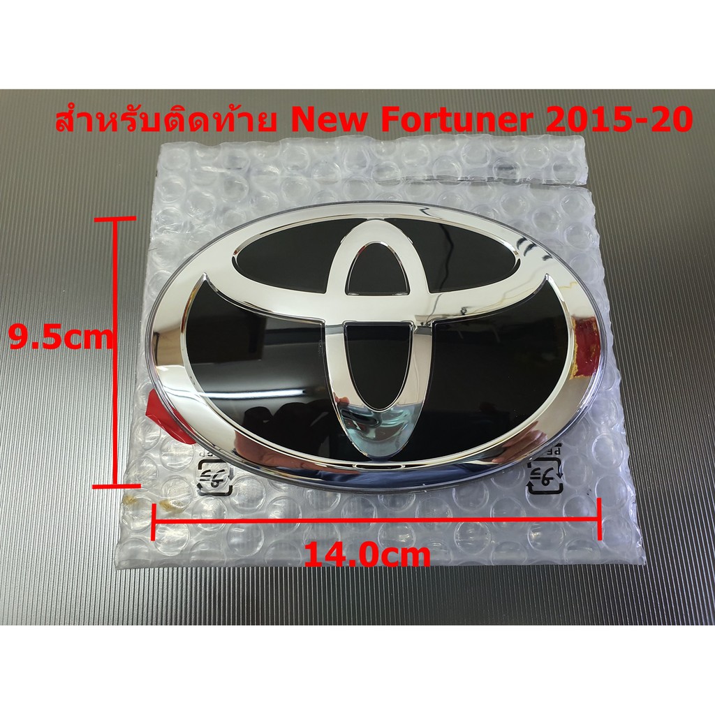 TOYOTA Logo Sign Black Glass Plastic Chrome Edge Size 14.0X9.5 Cm For Attaching To The Rear Of NEW FORTUNER 2015-20 Installed With Adhesive Tape