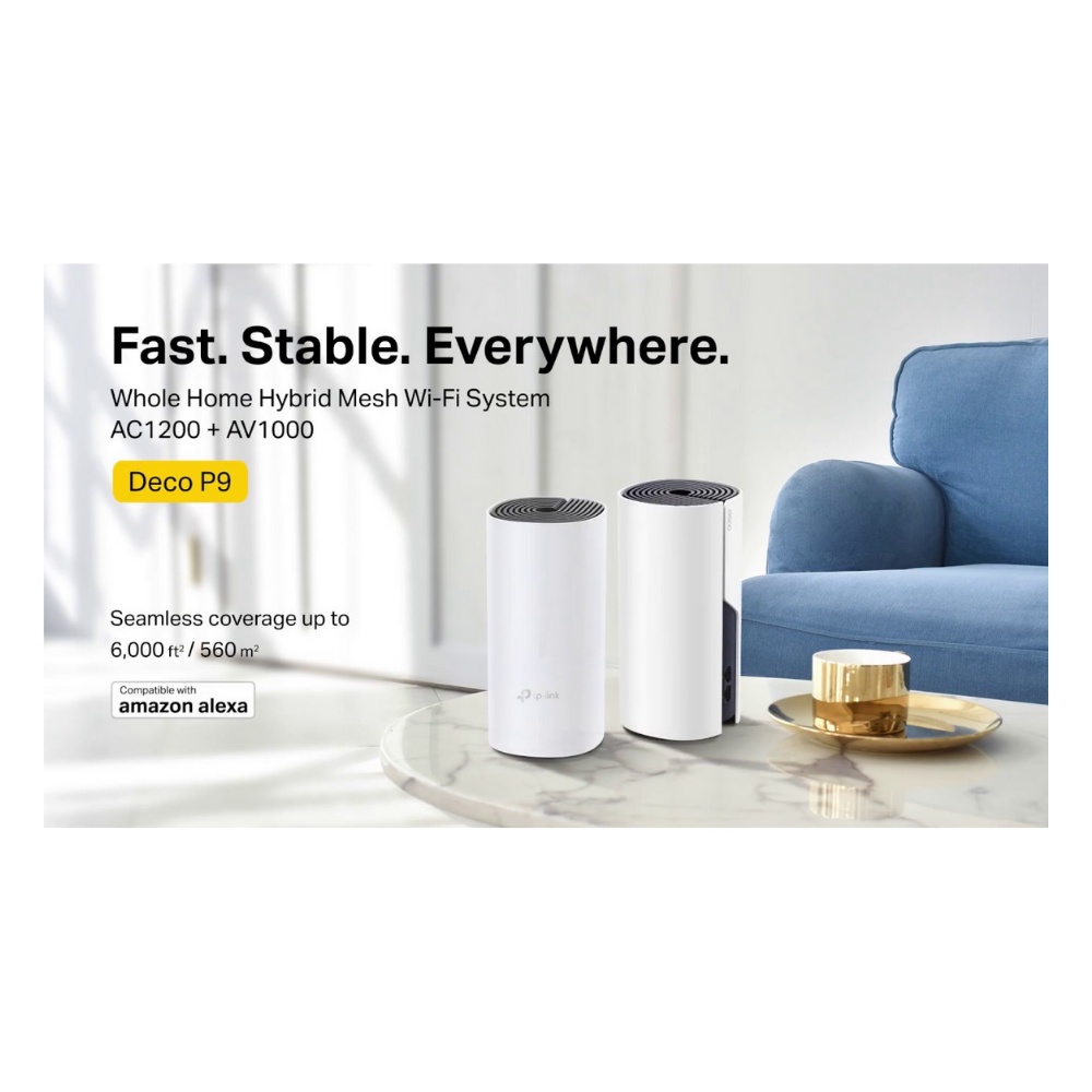 TP-LINK Deco P9 (2-Pack) Ac1200 + Av1000 Whole Home Hybrid Mesh Wi-Fi System
