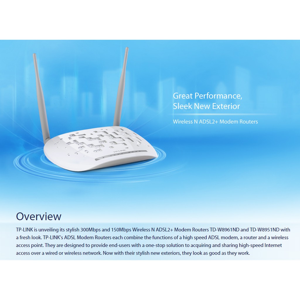 TP-LINK TD-W8961N Wireless N300 ADSL2+ Streamyx WiFi Modem Router