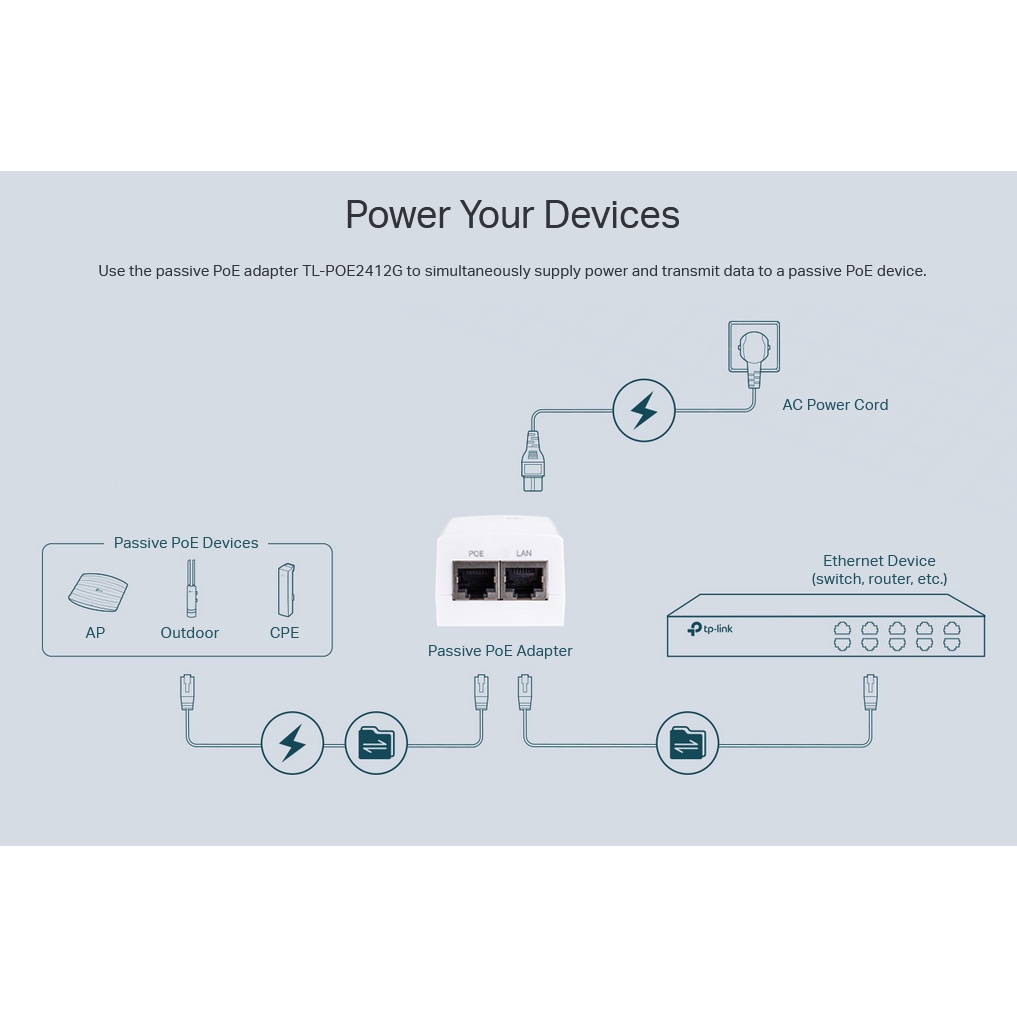 TP LINK TL-POE2412G Gigabit 24VDC Passive PoE Adapter