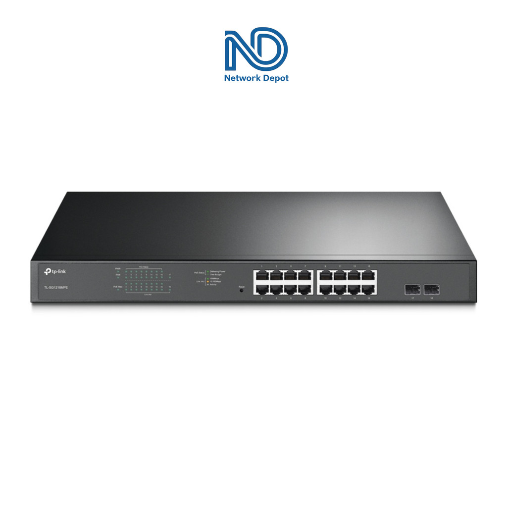 TP-Link Jetstream TL-SG1218MPE - 16-Port Gigabit Smart Managed 192W PoE+ Switch with 2 SFP Slots