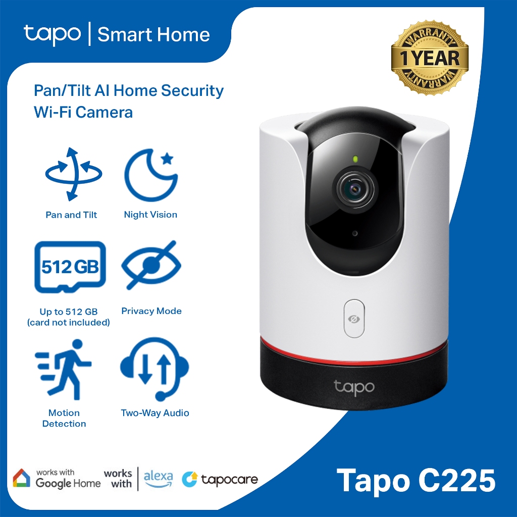 Tapo Official Store | TP-Link | C225 | Pan/Tilt | Home Security | Wi-Fi | Indoor | Camera | CCTV