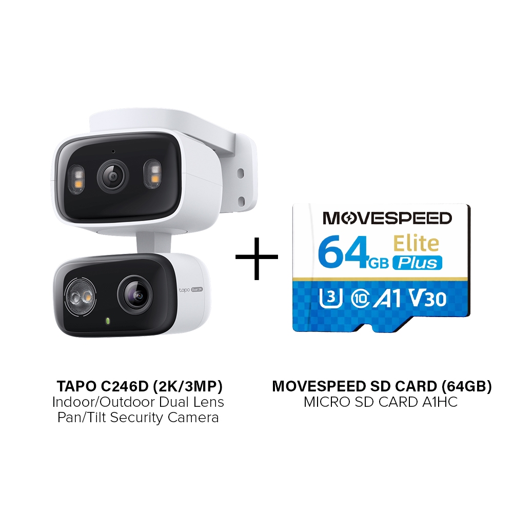 TP-Link Tapo C246D 2K 3MP Dual Lens Indoor/Outdoor Dual Lens Pan/Tilt Security Camera | Wide-angle