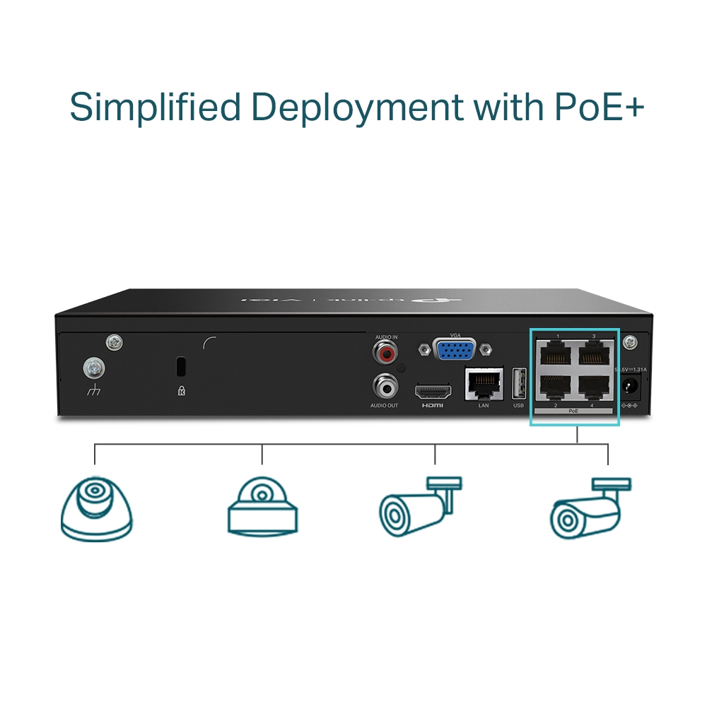 TP-Link | VIGI | NVR1004H-4P | 4 Channel | PoE+ | Network | Video | Recorder | NVR
