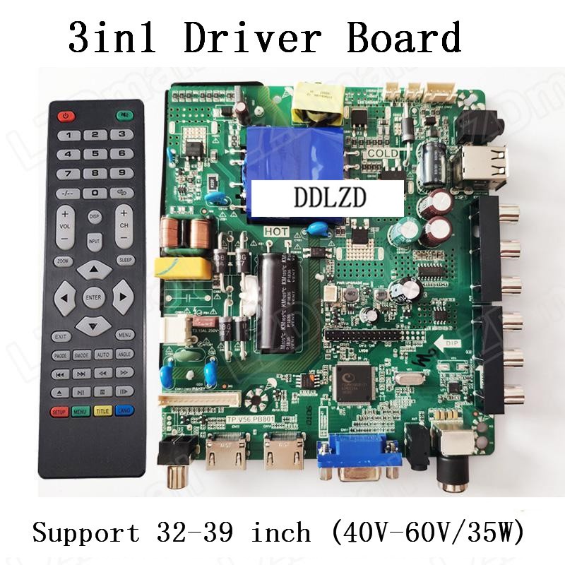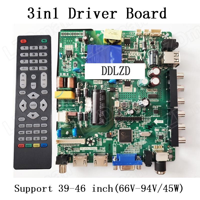 TP.V56.PB801 LED LCD TV 3in1 Driver Board Universal LCD Controller Board TV Motherboard Mainboard VGA/HDMI/AV/TV/USB Interface Compatible TP.V56.PB726 / PB801 Support 32-46inch