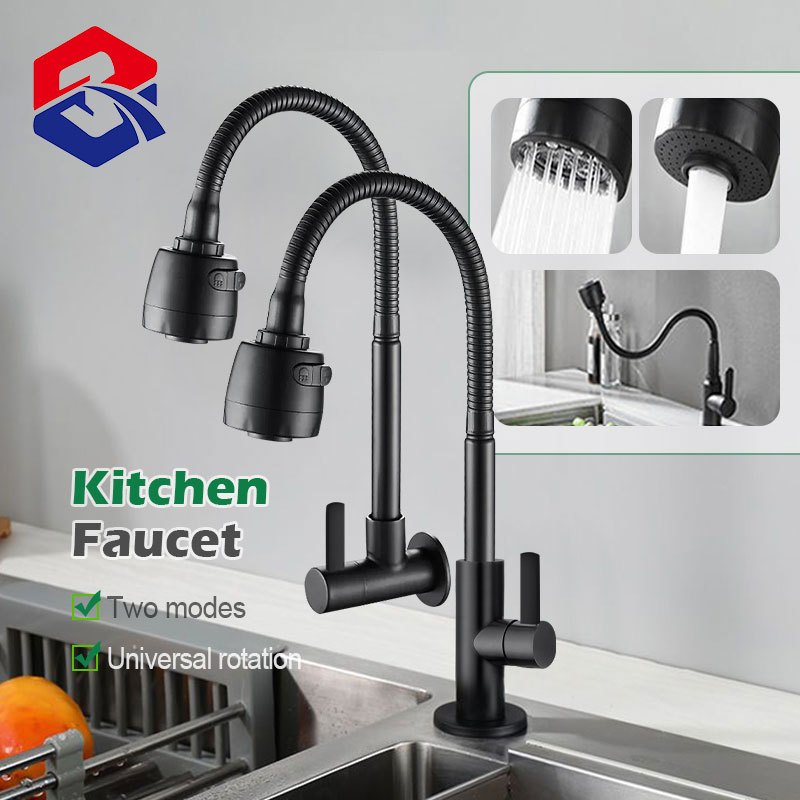 TQTQ Kitchen Faucet SUS304 PREMIUM MATTE BLACK Cold Tap sink faucet Stainless Steel Multiple modes