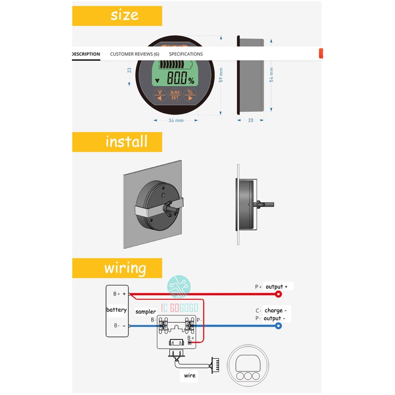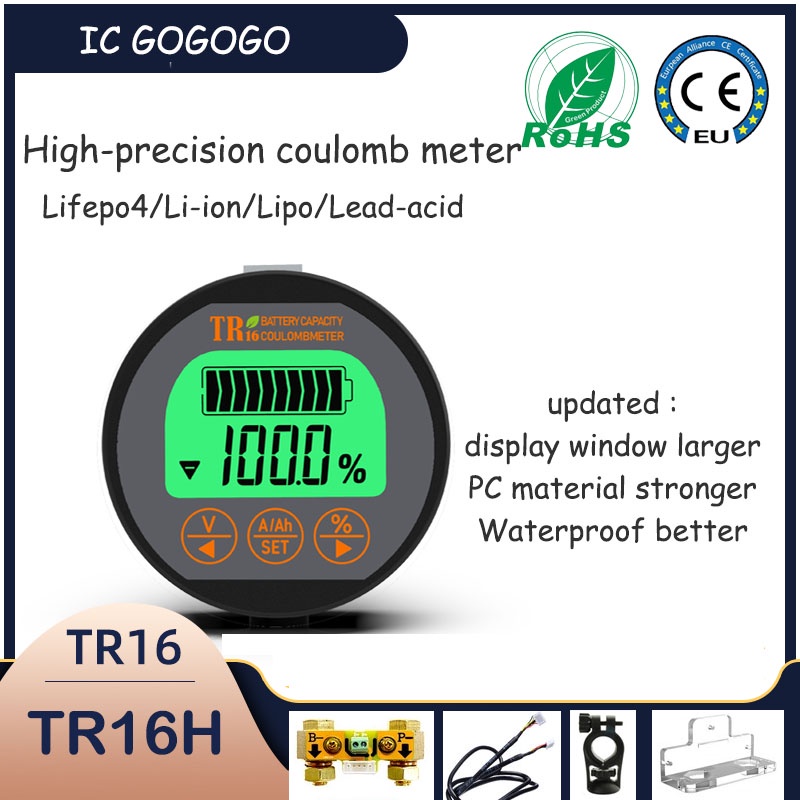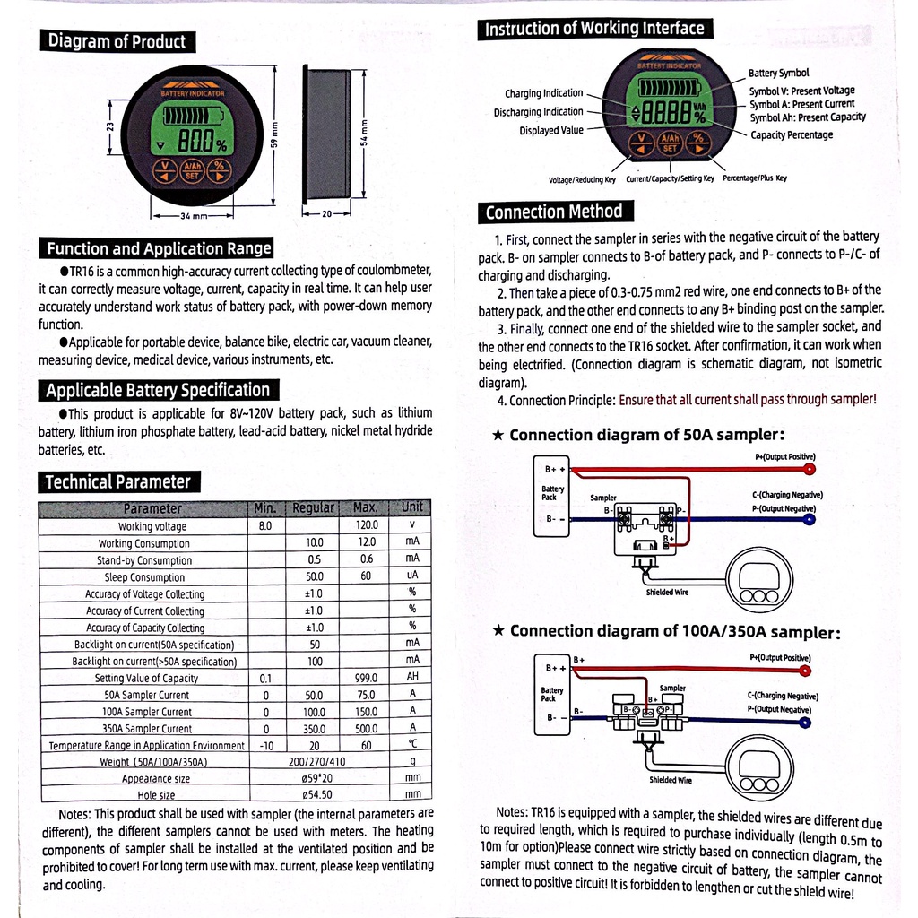 TR16H TR16 8-80V 50A 100A 350A Coulomb Counter Meter Battery Capacity Indicator Ammeter Voltmeter Ebike Li-ion Lithium lifepo4