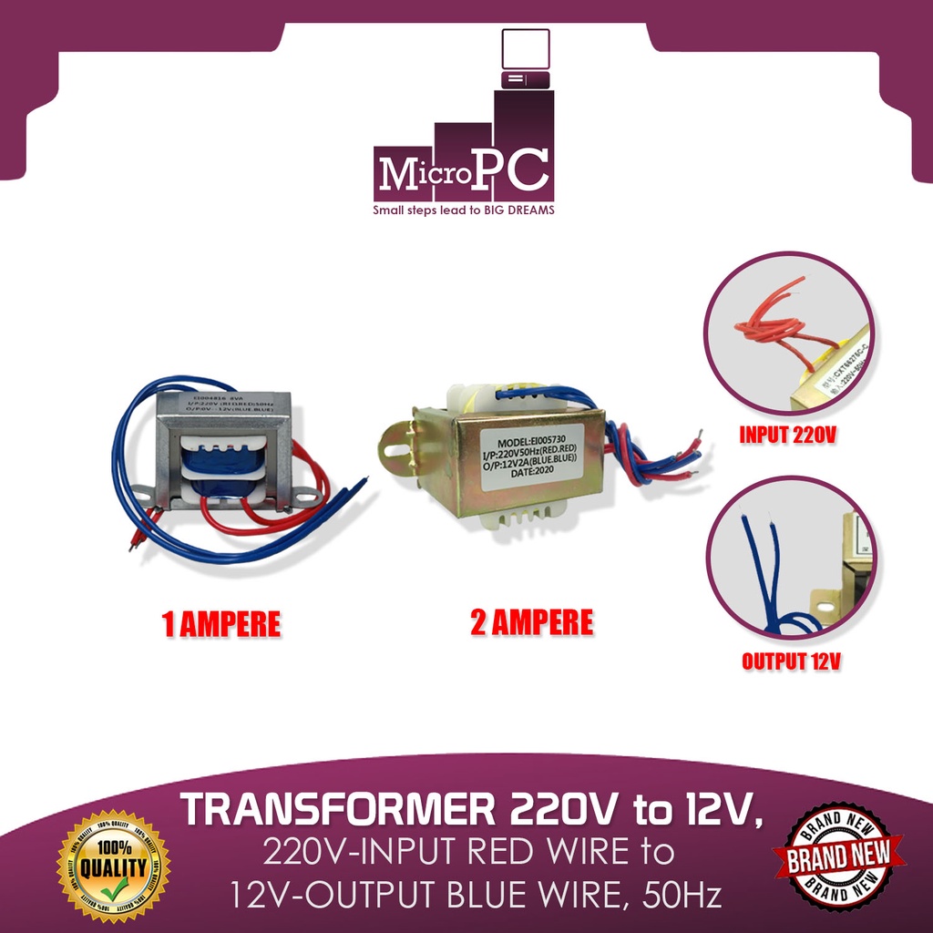 TRANSFORMER 220V to 12V, 220V-INPUT RED WIRE to 12V-OUTPUT BLUE WIRE, 50Hz