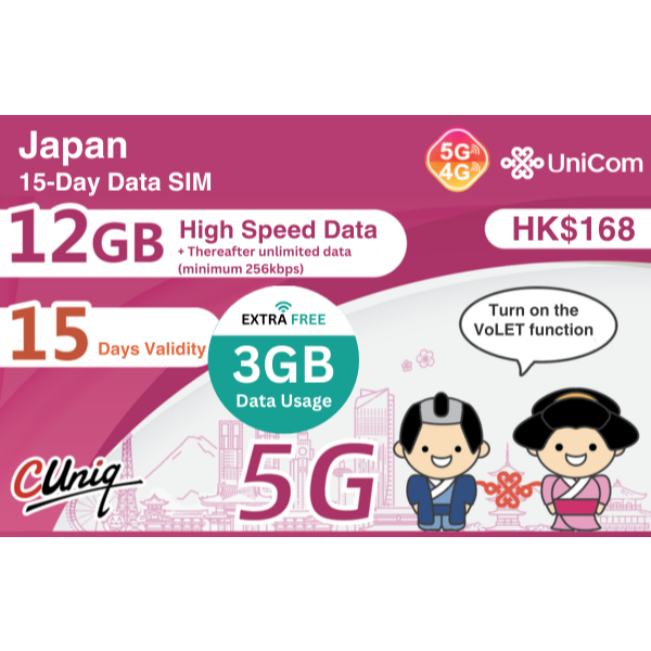 TRAVEL DATA ROAMING SIM CARD FOR JAPAN (12GB)