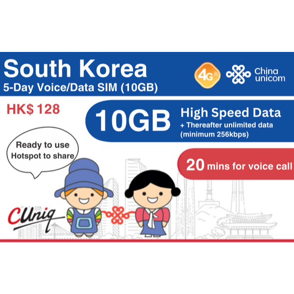 TRAVEL DATA ROAMING SIM CARD FOR SOUTH KOREA (10GB)
