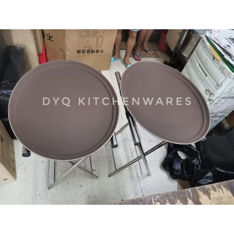 TRAY STAND STAINLESS WITH Serving Tray OVAL NON-SKID/RUBBERIZED