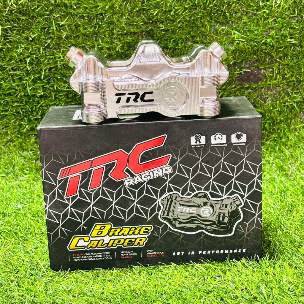 TRC RACING UNIVERSAL CNC RADIAL BRAKE CALIPER 4POT CERAMIC PISTONS w/ PRESSURE PLATE 8141 SILVER