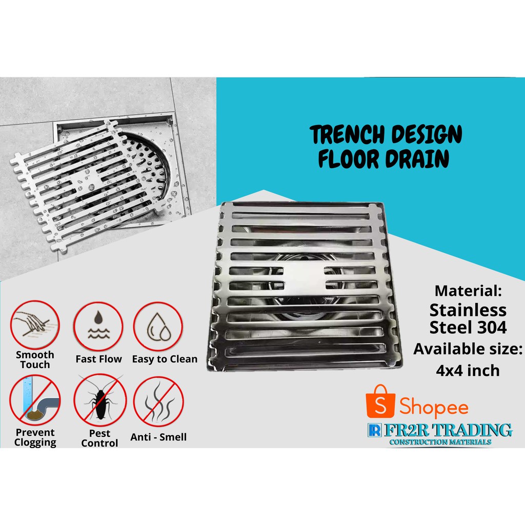 TRENCH DESIGN FLOOR DRAIN 4X4 INCH
