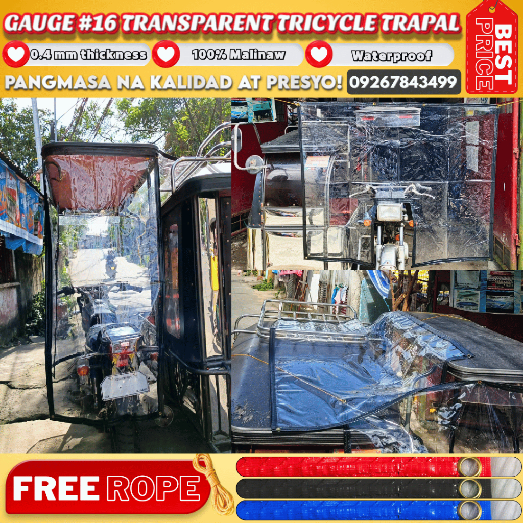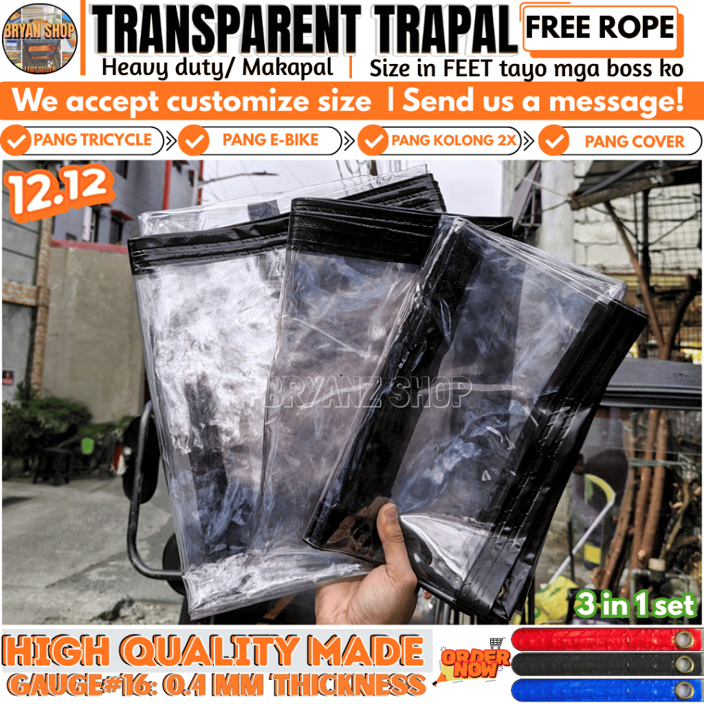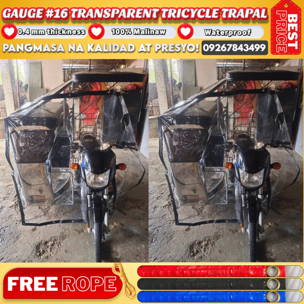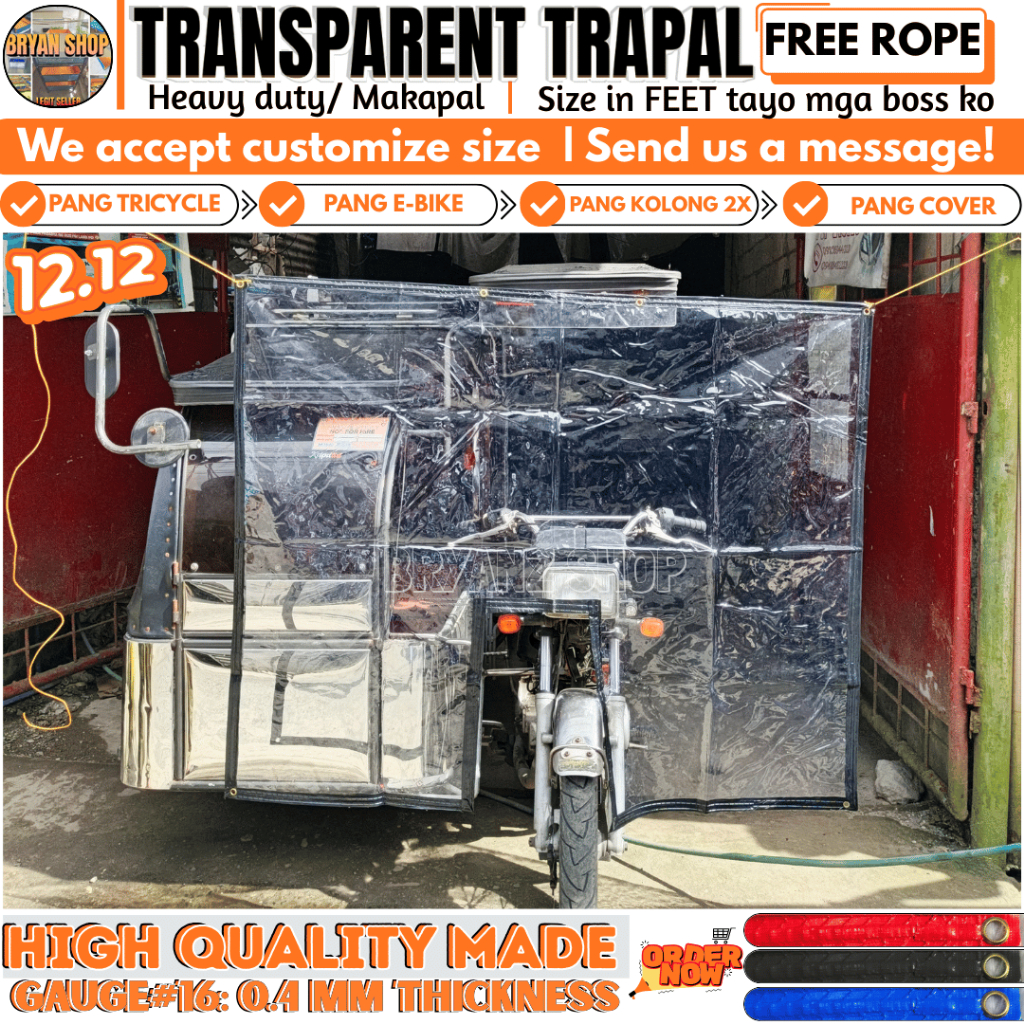 Trapal for TRICYCLE COVER SA EBIKE ,FREE ROPE TRANSPARENT MAKAPAL MATIBAY STRAIGHT CUT WATERPRROF
