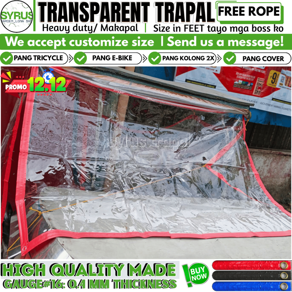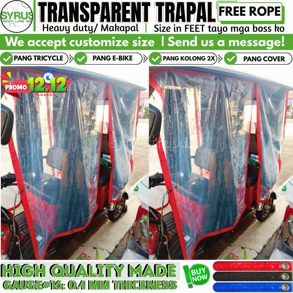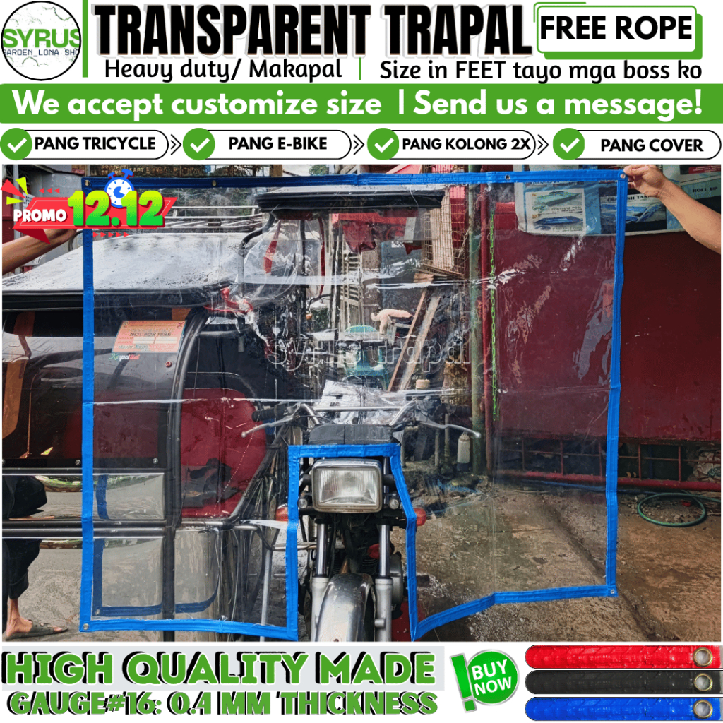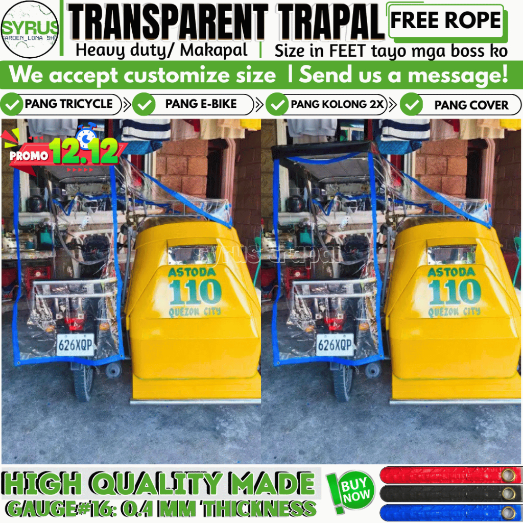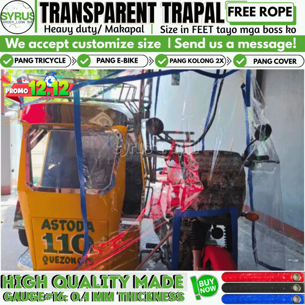 TRICYCLE COVER TRANSPARENT TRAPAL GAUGE 16 MAKAPAL MATIBAY W/ FREE ROPE