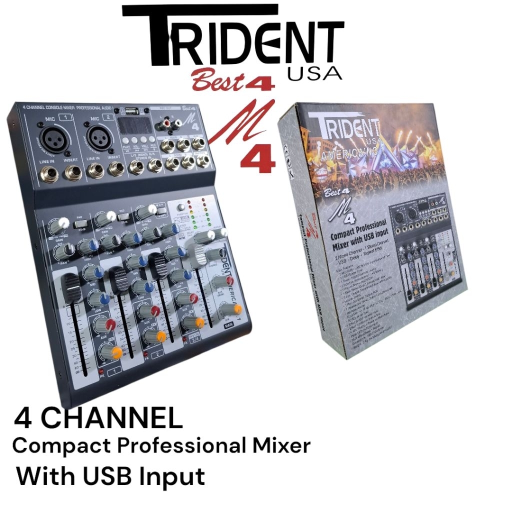 TRIDENT M4 4 CHANNEL COMPACT PROFESSIONAL MIXER WITH USB INPUT