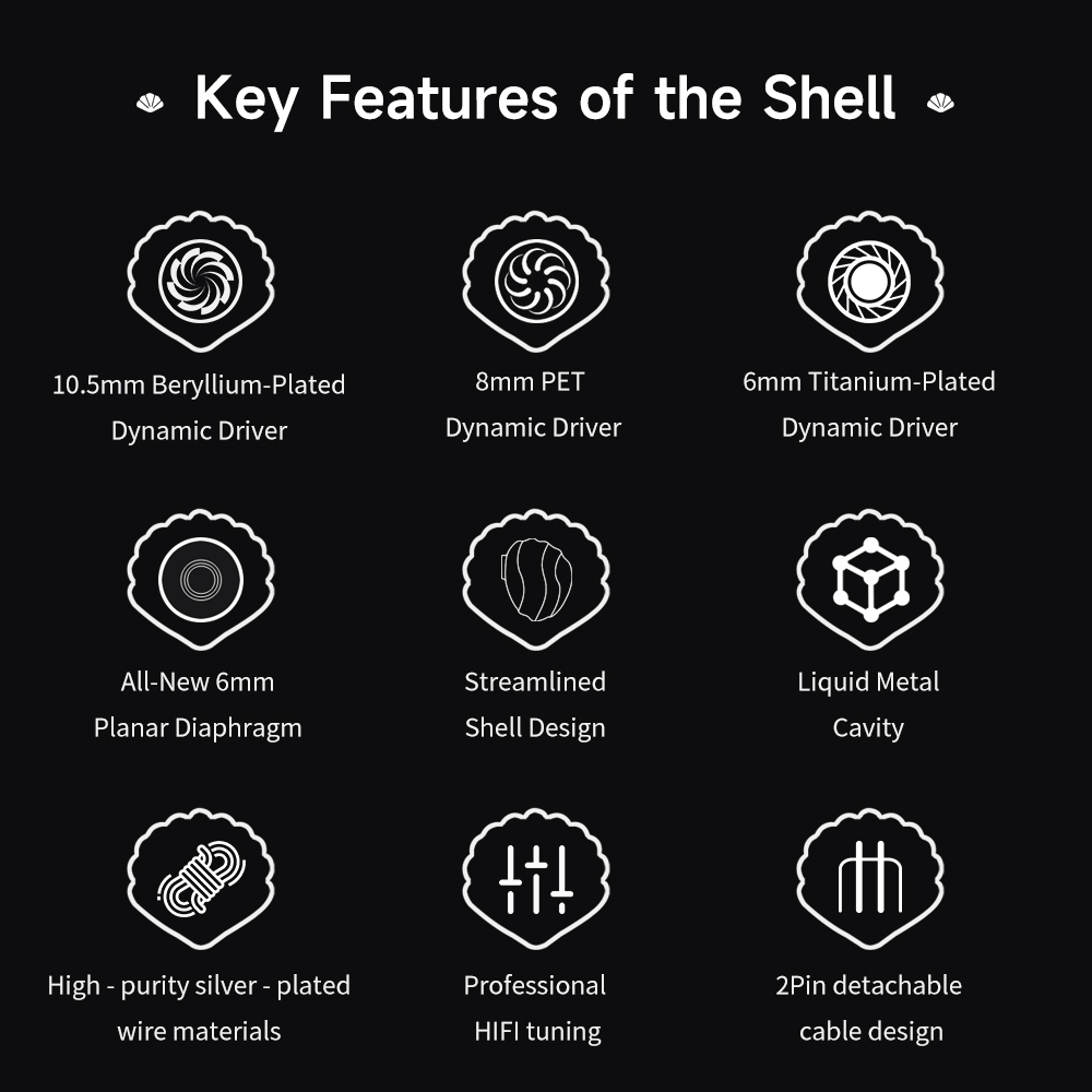 TRN SHELL Four-Unit Dynamic Driver Planar Hybrid IEM Earphones with Premium Silver-Plated Hybrid Cable