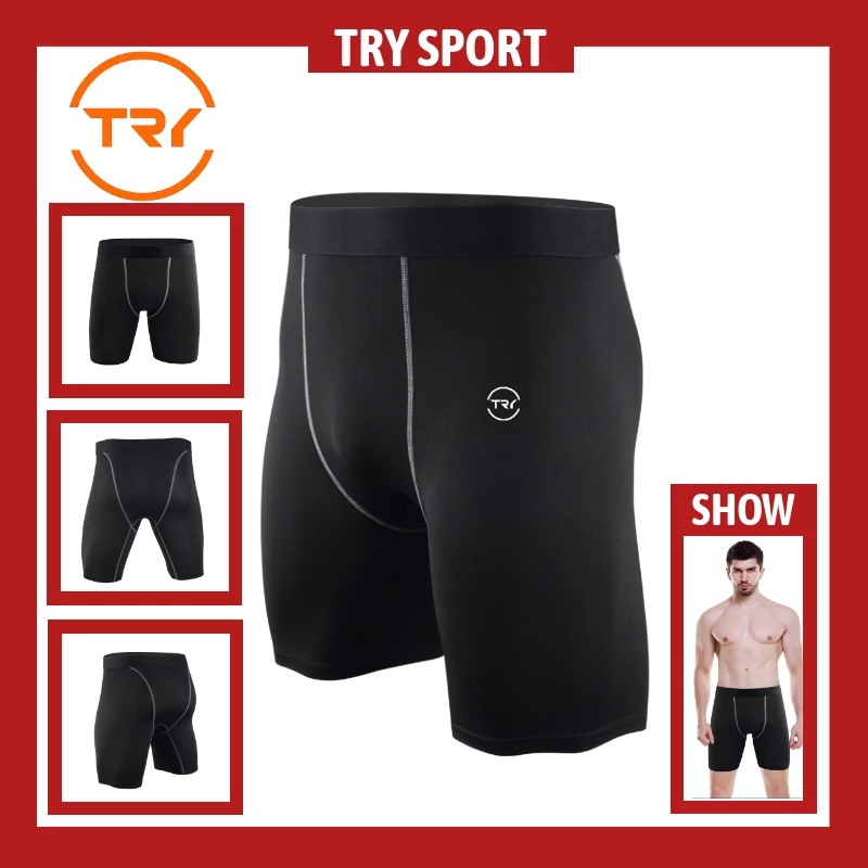 TRY Professional Men Compression Fitness Running Shorts Sport Quick Dry Tights Gym Bodybuilding