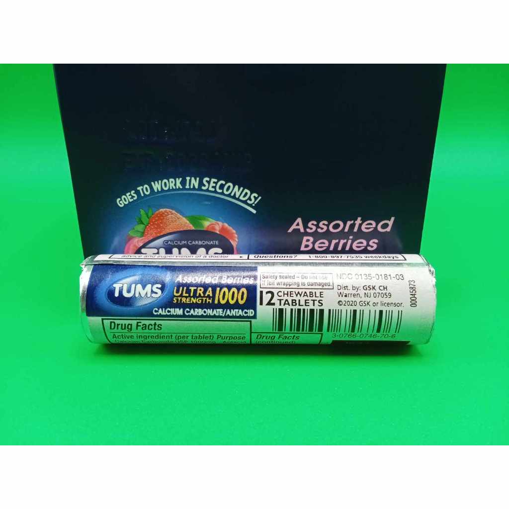 TUMS Antacid Ultra Strength 1000 - Assorted Berries 12 Chewable Tablets