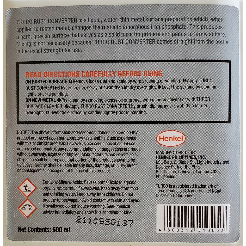 TURCO RUST CONVERTER 500ML / 1LITER by HENKEL