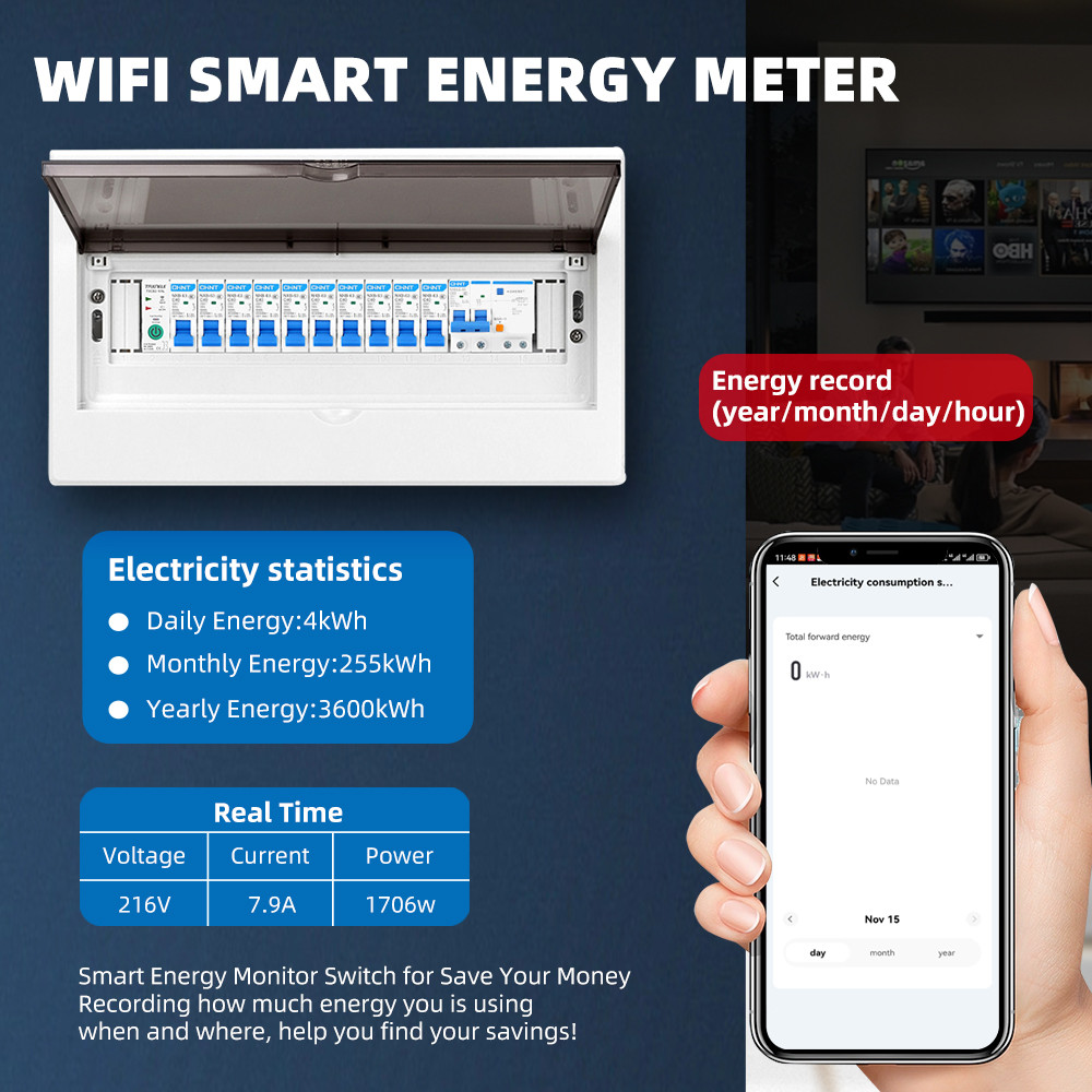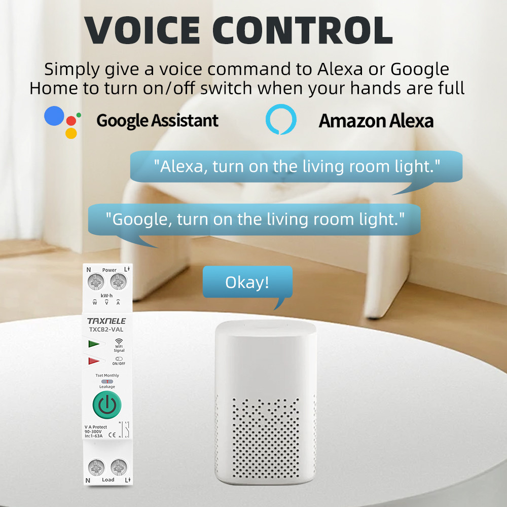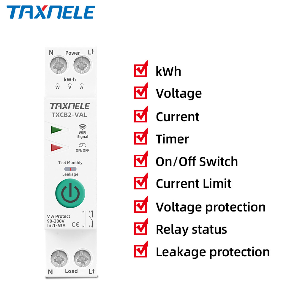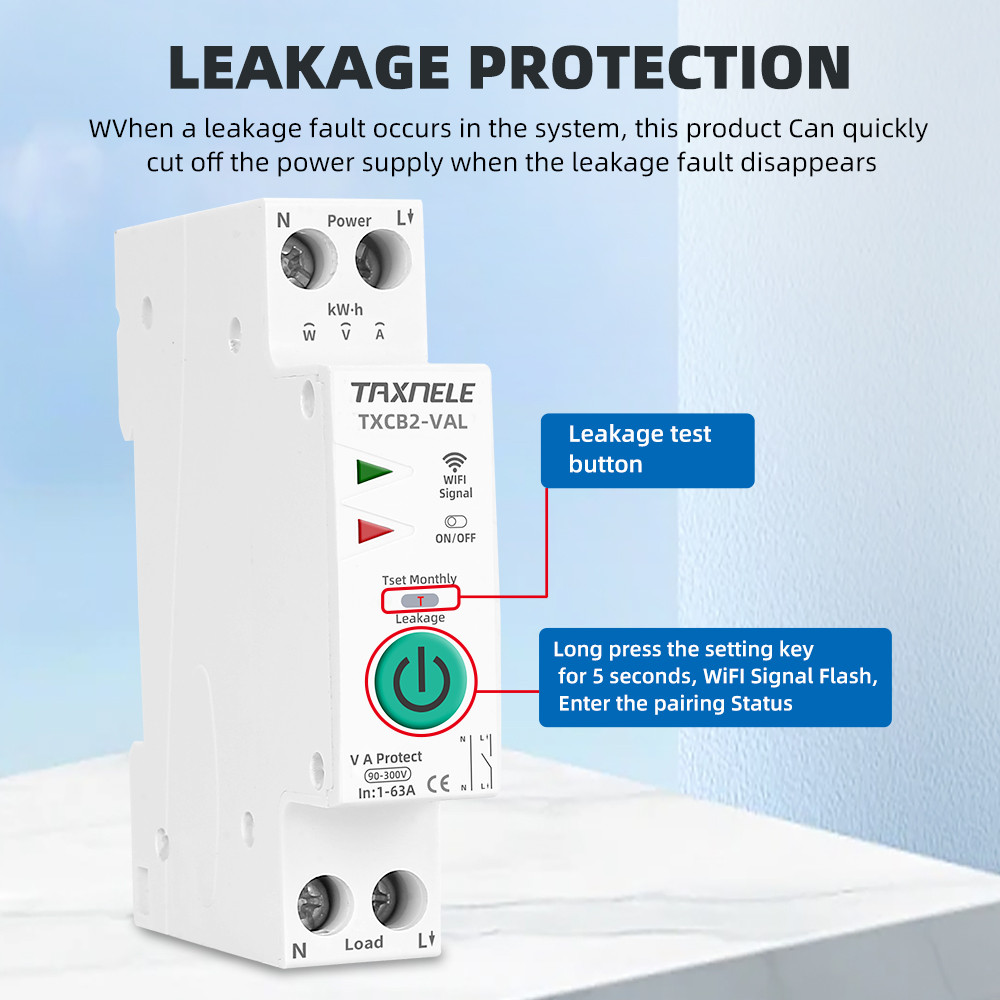TUYA WIFI Smart Leakage Protect Voltage protector Circuit Breaker Power Energy Meter KWh 1P 63A MCB